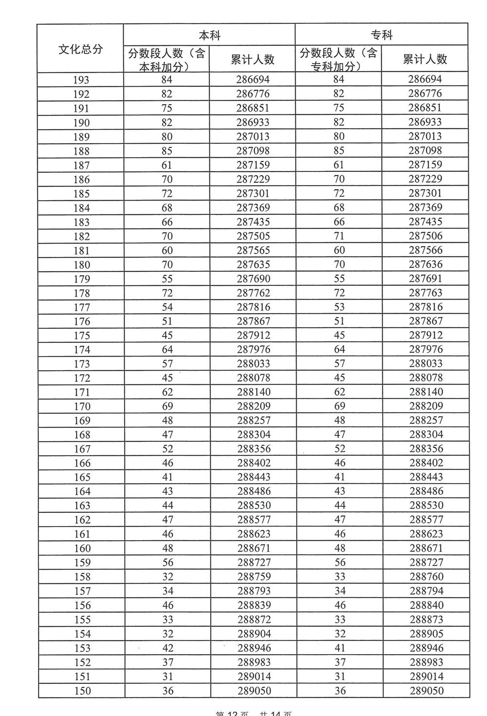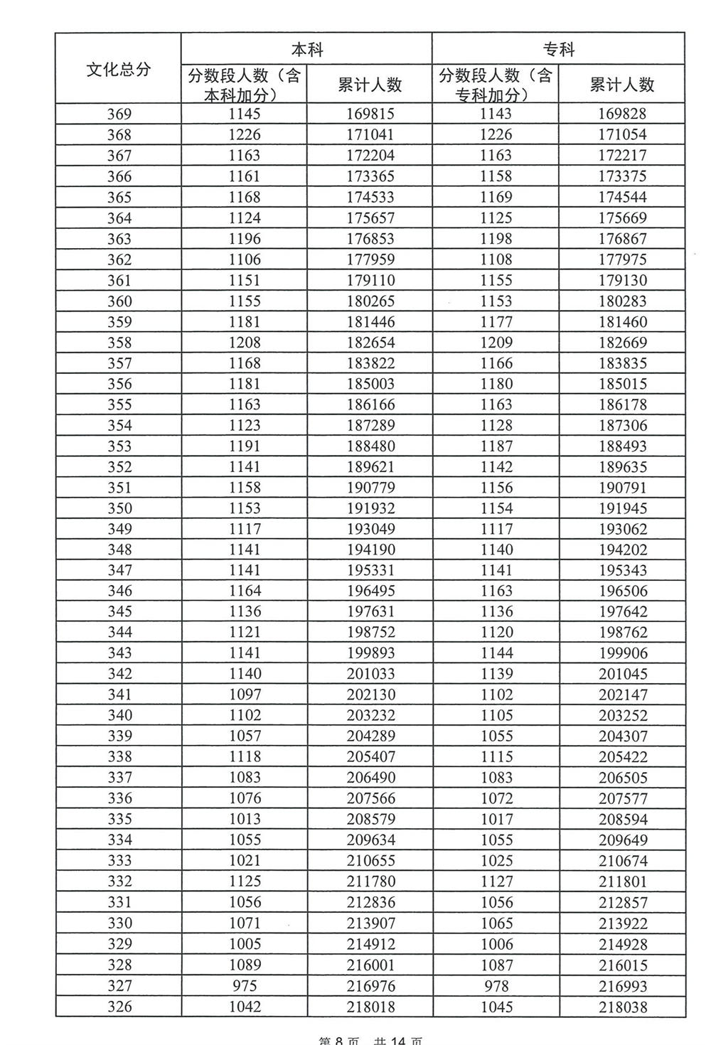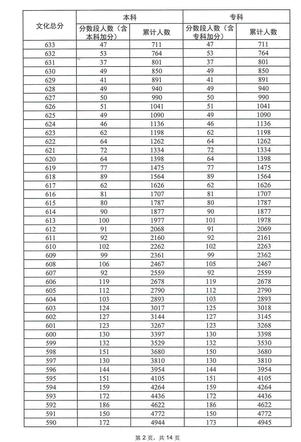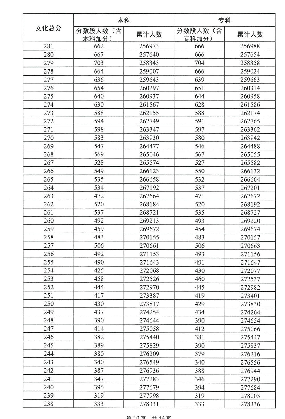 广东省2023年高考普通类(历史)分数段统计表