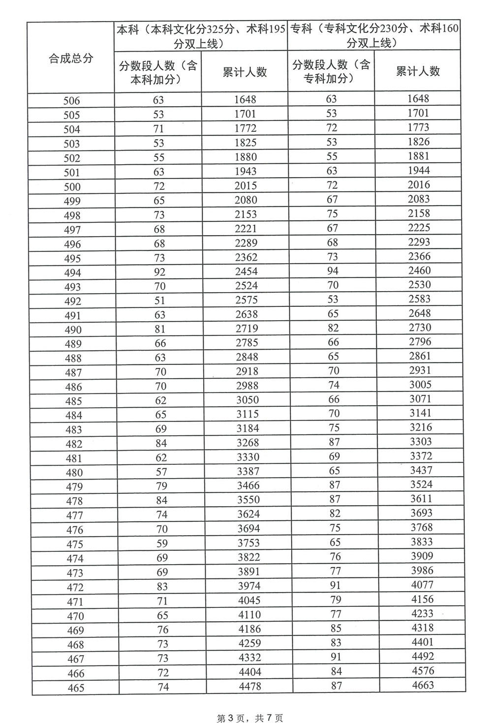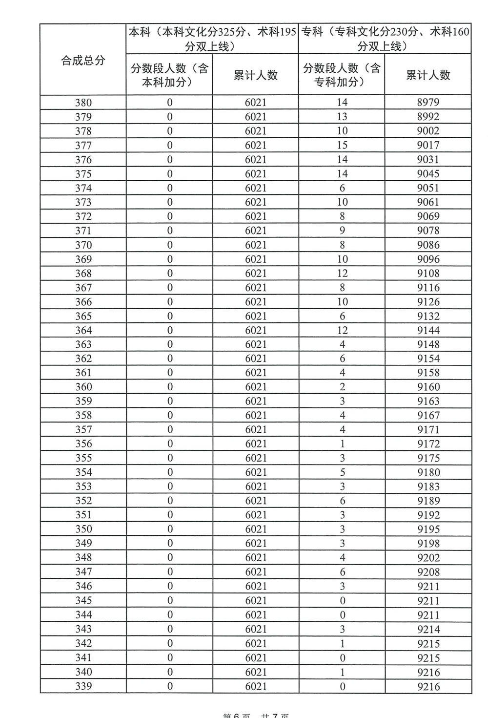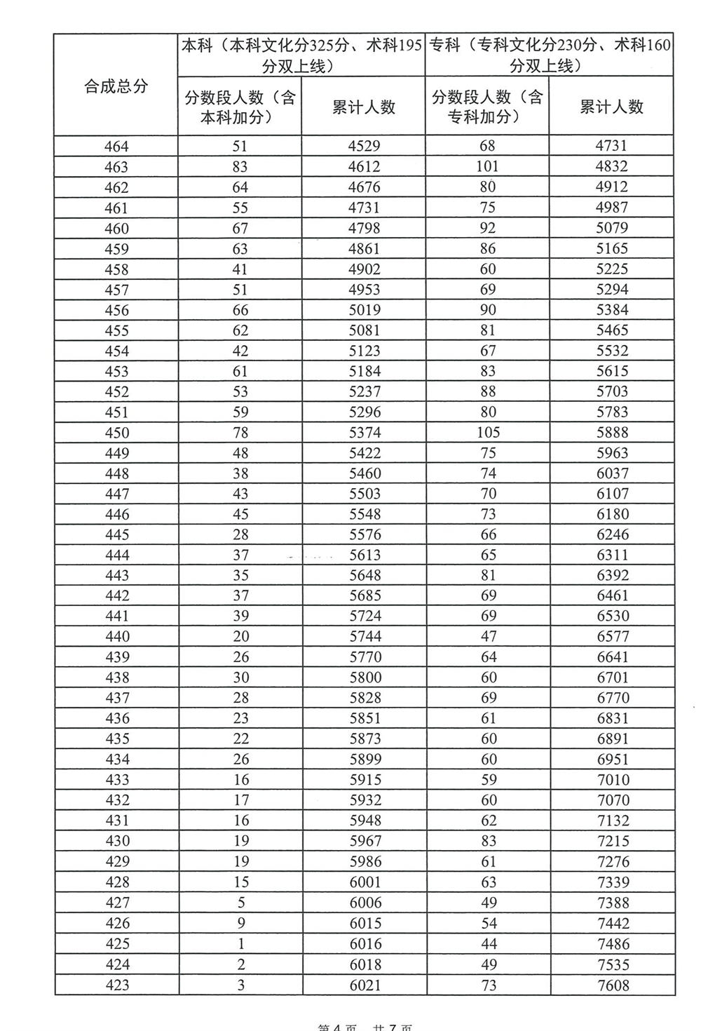 广东省2023年普通高考音乐学类总分分数段统计表