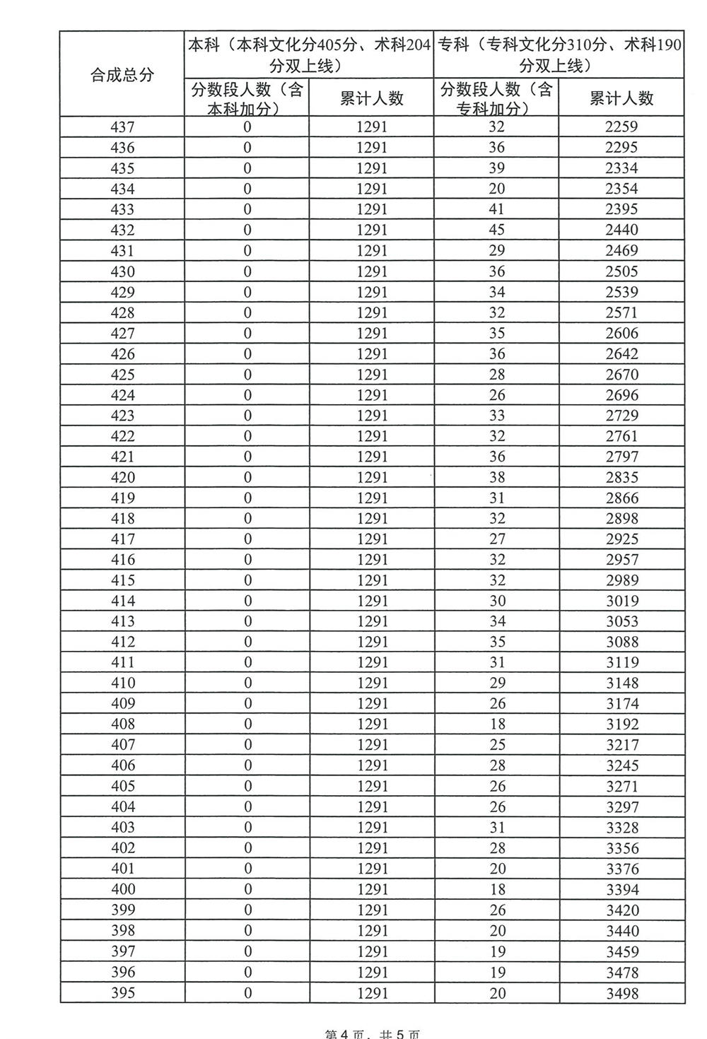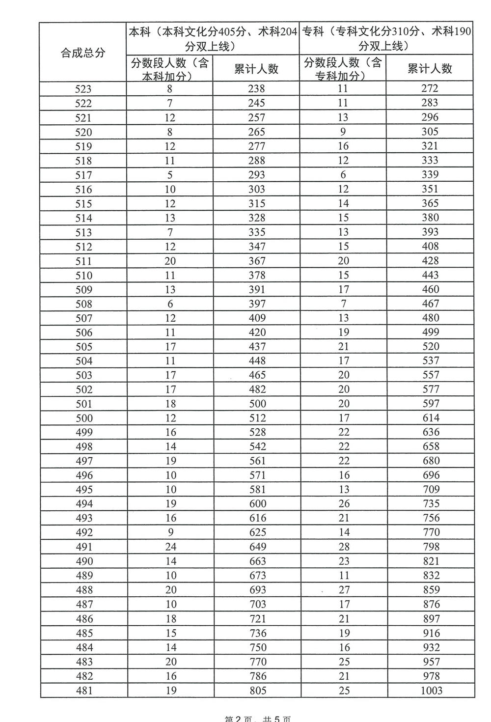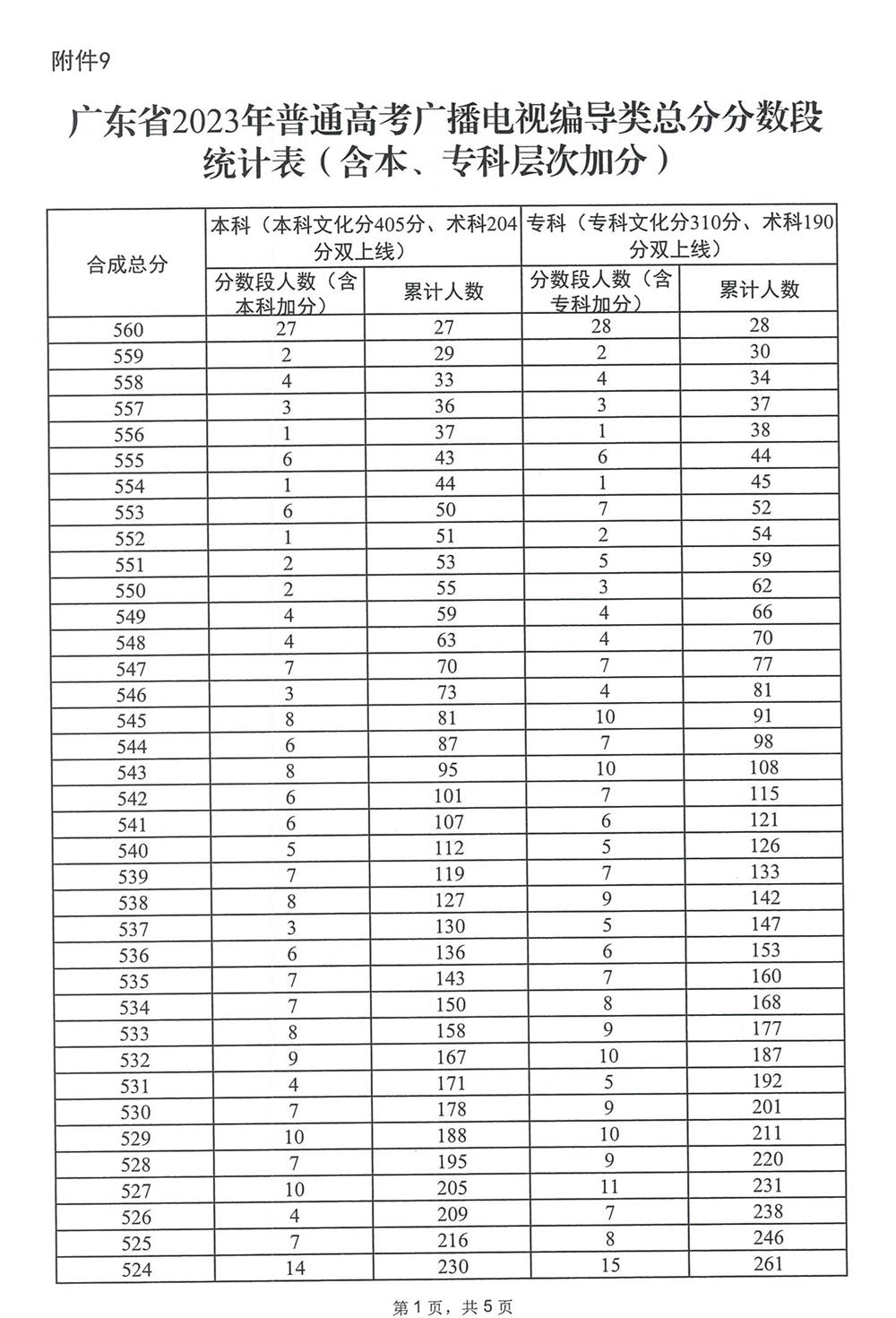 广东省2023年普通高考广播电视编导类总分分数段统计表