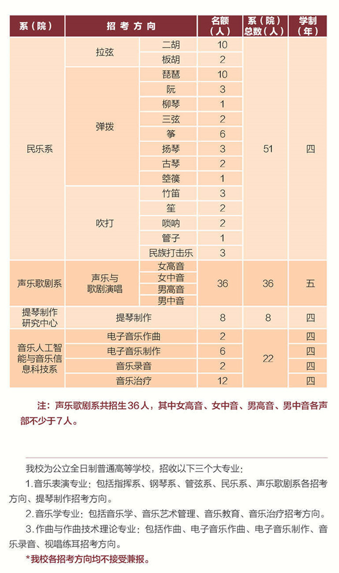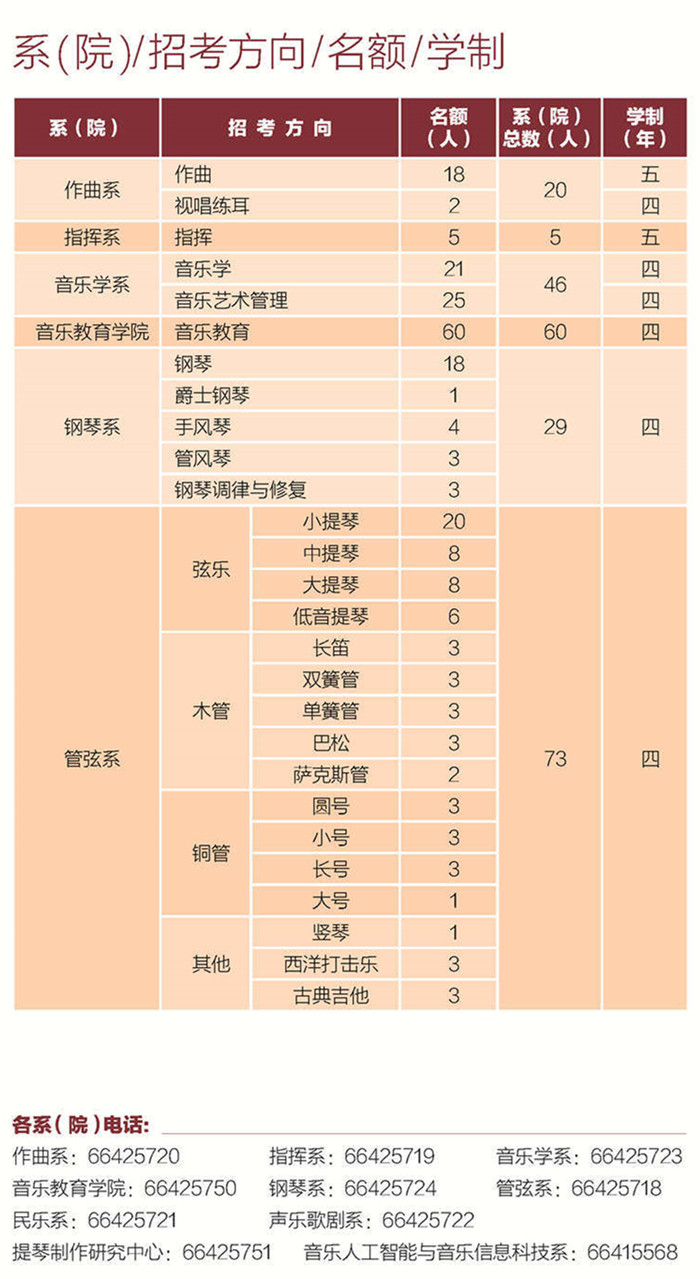 中央音乐学院2021年招考方向/ 名额/ 学制