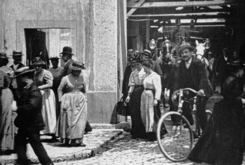 《火车进站》拍摄的是一辆火车开进巴黎萧达车站时,上车和下车,离别以及相聚人们的场景,1分钟左右的短片,真实地记录了当时秋冬之际巴黎萧达车站月台的情景。