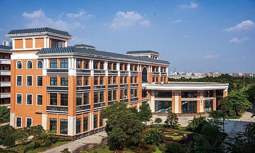 学校采用广州大学建筑设计研究院的设计方案成功:注重对岭南之水的打造,教学区与生活区通过“两轴一核”的校园模式进行构建结合。建筑空间借鉴中国园林的造园手法,运用当代西方园景的处理方法,建筑造型简洁明快,彰显岭南建筑特点。学校设计布局科学合理,基础设施完备,除常规教学和实验功能室、图书馆外,还建有网络实验室、自动录播室、机器人实验室、无线电测向室、环境实验室、心理工作室、学生电视演播室等特色功能室,以及能容纳400人的学术报告厅和容纳全校3000多名师生的综合体育馆。