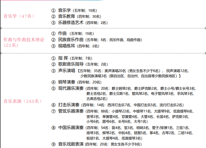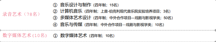 理论专业、录音艺术专业、数字媒体艺术专业、音乐表演专业(限指挥、歌