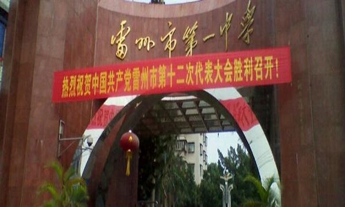 雷州市第一中学始建于1926年,是粤西地区历史最悠久的中学之一,现为雷州市重点中学,广东省一级学校、广东省绿色学校、广东省现代化技术实验学校、广东省中小学心理健康教育示范学校、广东省书香校园、全国读书育人特色学校、全国教育科研先进单位、全国十一五规划课题实验基地。