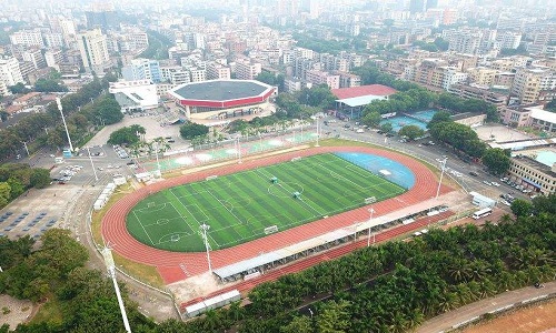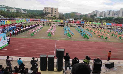 茂名市体育运动学校整个校园各功能区分布合理、明确,由学生宿舍、饭堂、教工宿舍组成生活区,由教学楼、办公综合楼组成教学区,由一个标准400米环形跑道田径场、综合训练馆、游泳场、4个篮球球场、摔跤房、射击场、力量训练房和举重训练房组成运动区。校园总体布局合理,环境绿化配套齐全,功能完善。