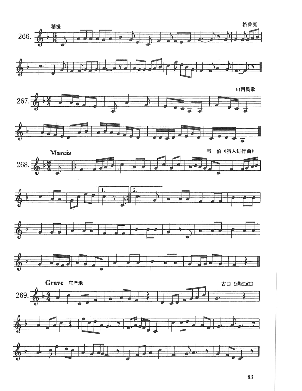 广东省音乐统考视唱一个降号的各调式三