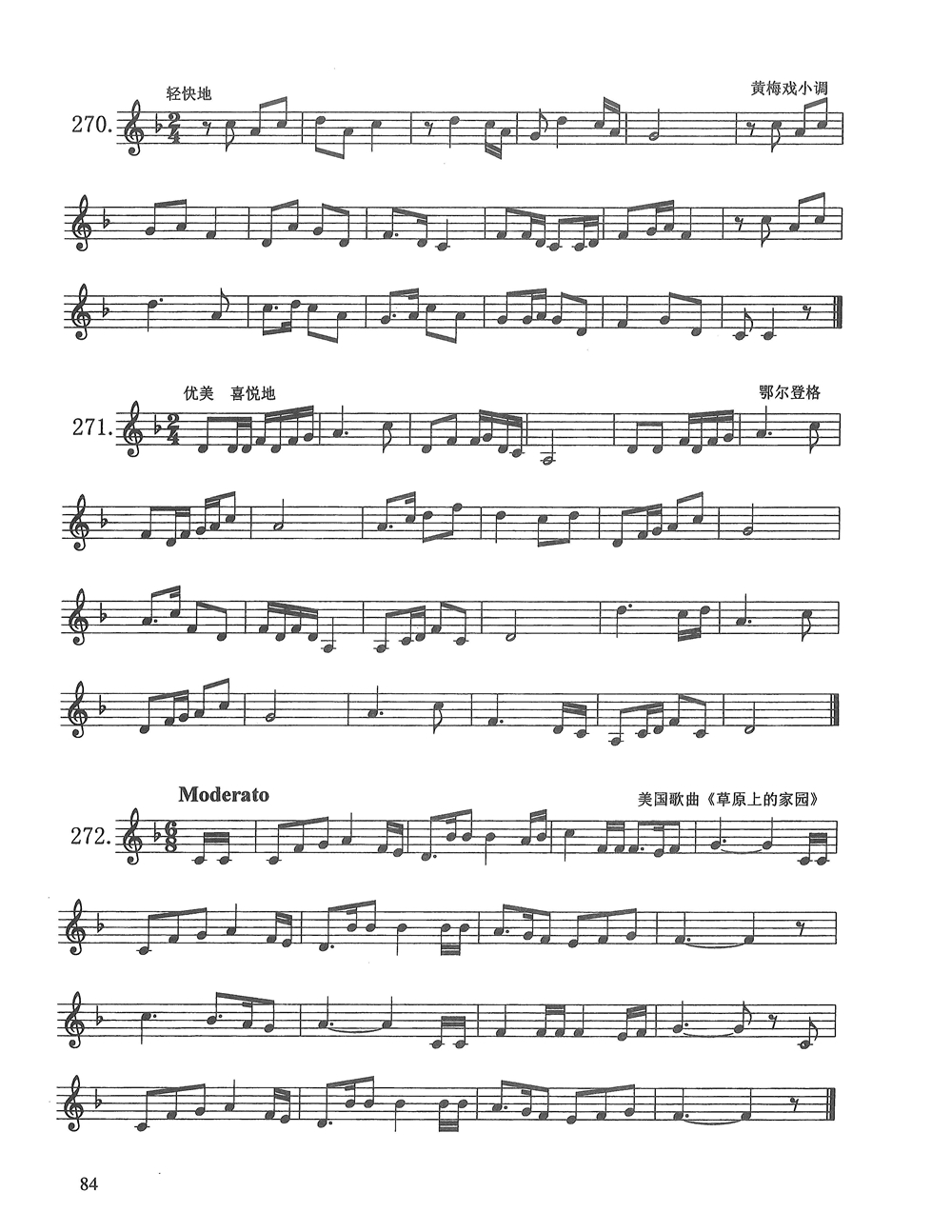 广东省音乐统考视唱一个降号的各调式四