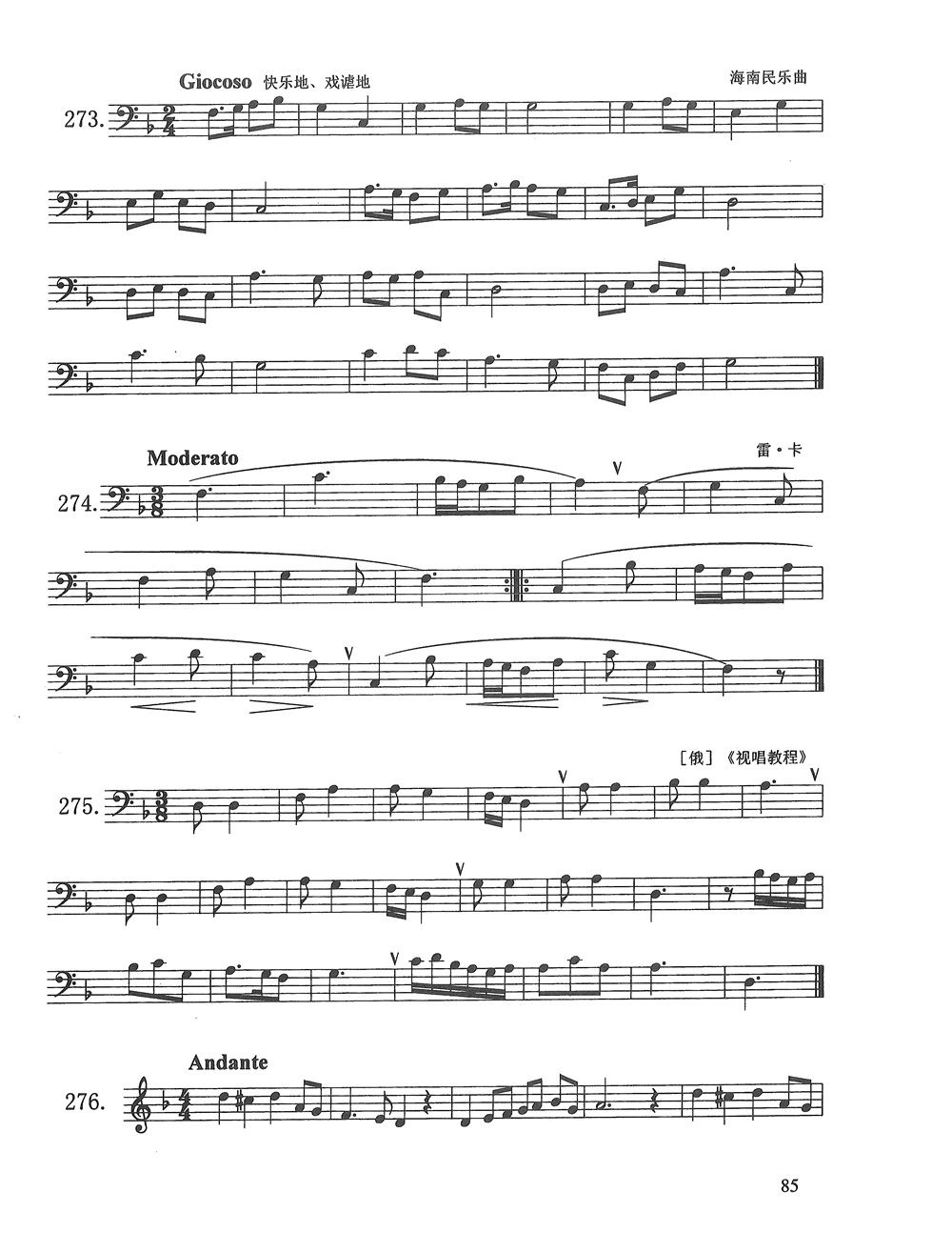 广东省音乐统考视唱一个降号的各调式五