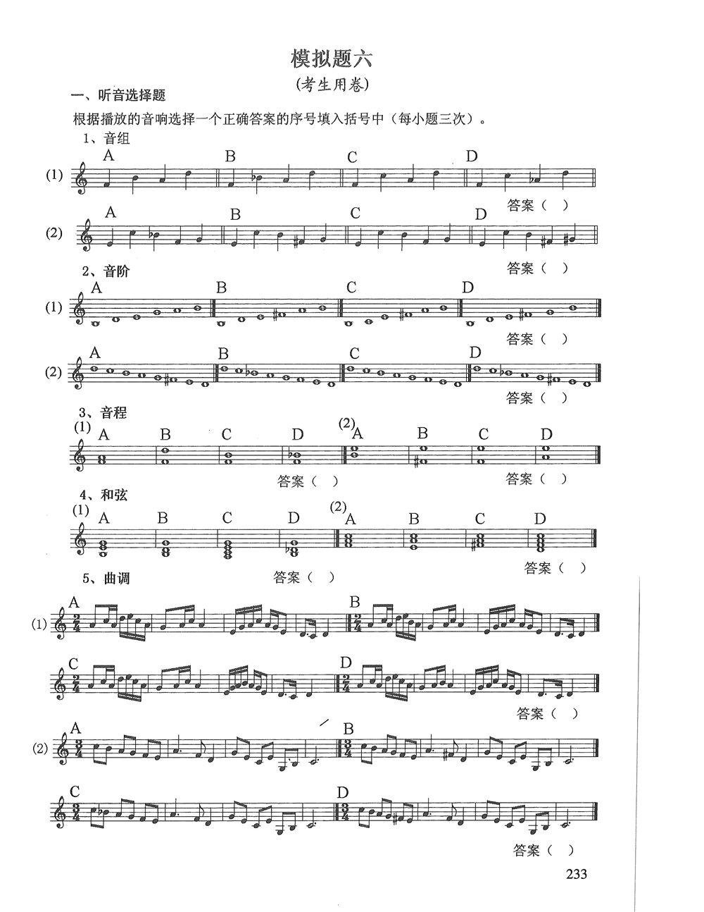 广东省音乐统考视唱模拟试题六一