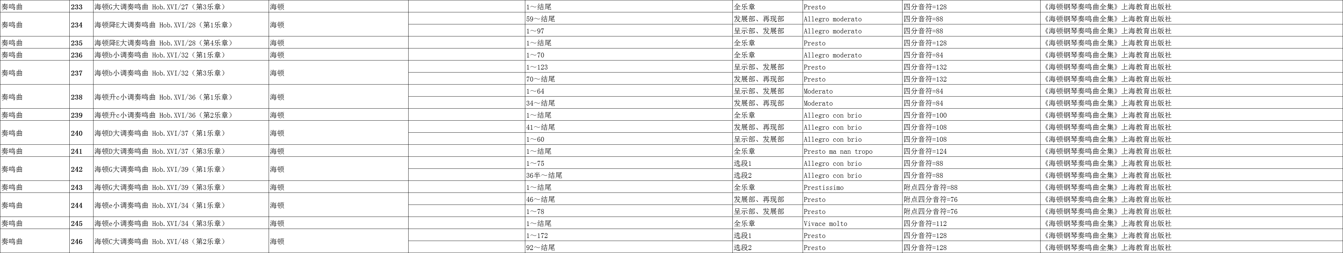钢琴奏鸣曲规定曲目226 海顿c小调奏鸣曲 Hob.XVI/20(第3乐章) 海顿 1~119 呈示部、发展部 Allegro 四分音符=112 《海顿钢琴奏鸣曲全集》上海教育出版社