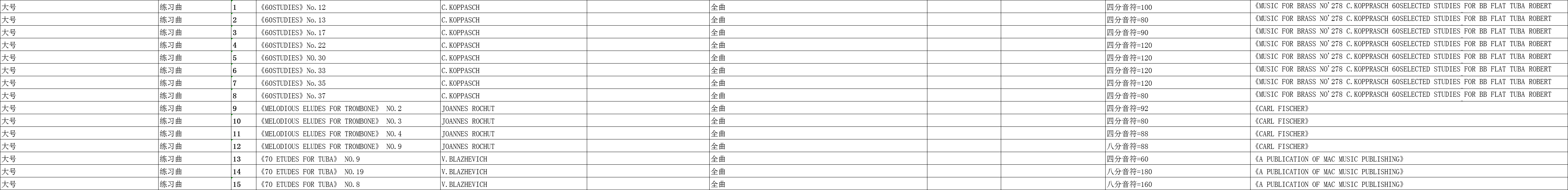 广东省音乐联考大号练习曲规定曲目