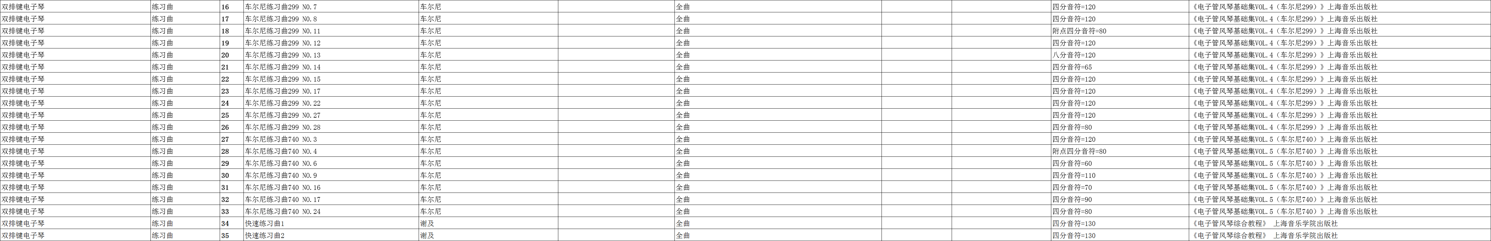 广东省音乐联考双排键电子琴练习曲规定曲目