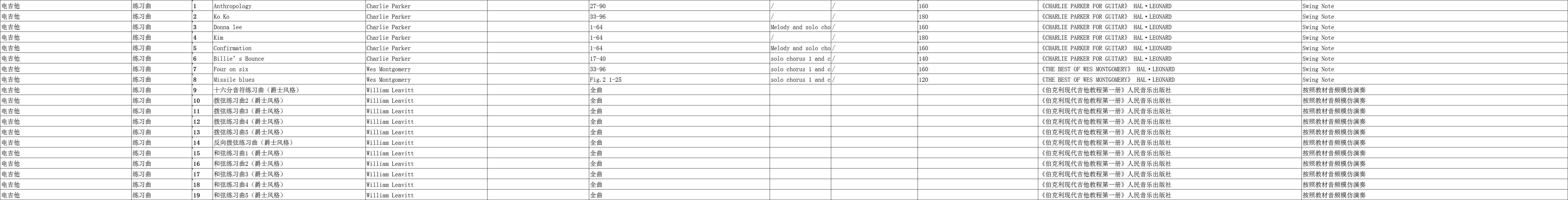 广东省音乐联考电吉他练习曲规定曲目