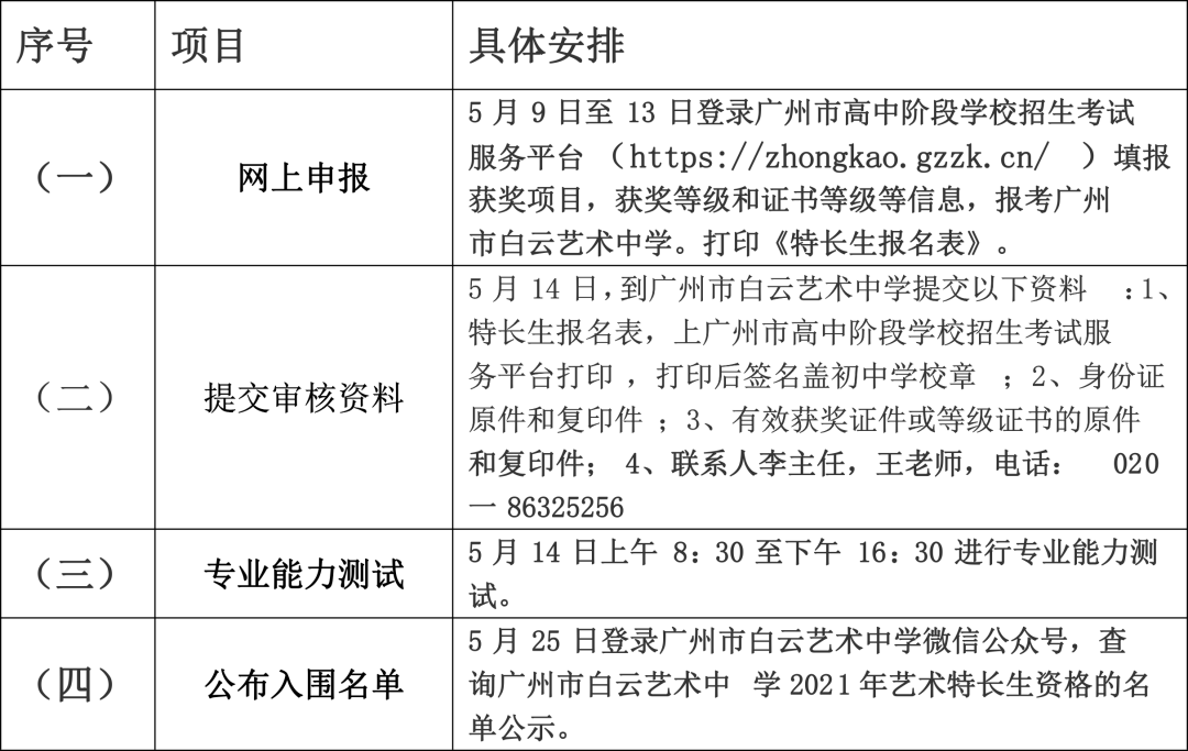 按照《关于做好 2021 年广州市普通高中招收体育艺术特长生招生工作的通知》要求,根据本校艺术生培养方向的要求,结合学校专业发展实际情况,特制定本特长生招生章程。