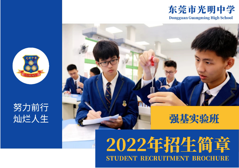 2020年9月,东莞市光明中学积极响应国家教育部开展的强基计划,在新高一成立强基计划实验班,促进普通高中育人方式改革,为国家培养拔尖创新人才。