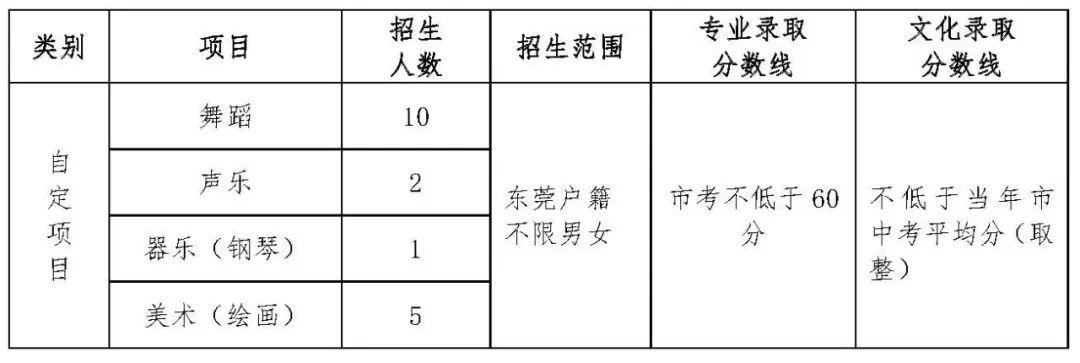 东莞户籍,符合我市普通高中学校报考条件,且具有学科特长或创新潜质的初三毕业生,可报名参加艺术类特色发展学生自主招生。