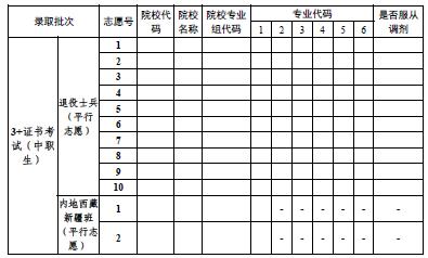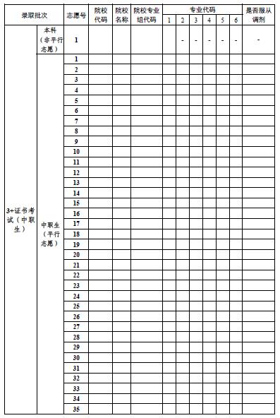 2.本表仅供网上报志愿时录入参考使用,考生志愿以网上确认为准。考生网上填报的志愿一经确认,不得更改。