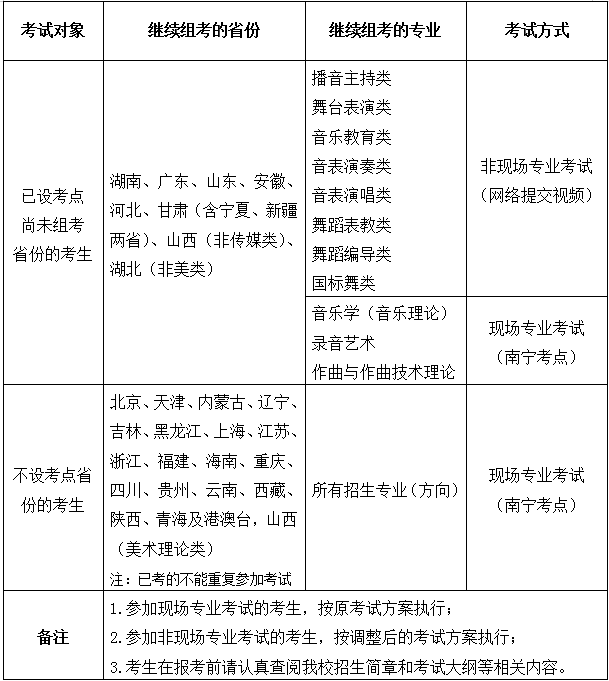 (四)考试地点:广西南宁市广西艺术学院(南宁考点),具体详见《专业考试准考证》上的安排。