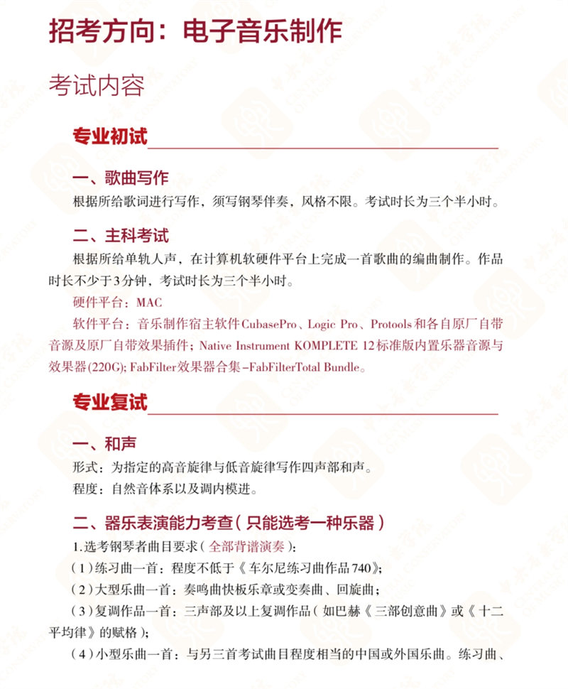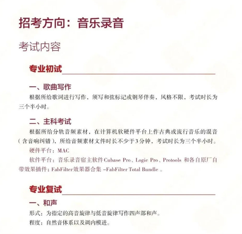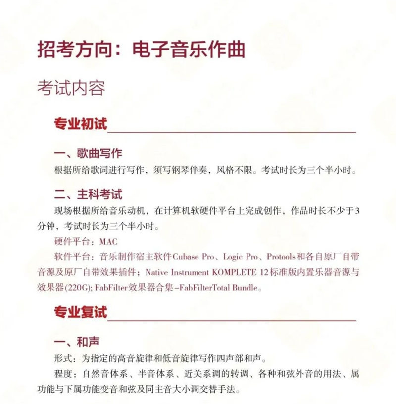 中央音乐学院音乐人工智能与音乐信息科技系2024年考试内容