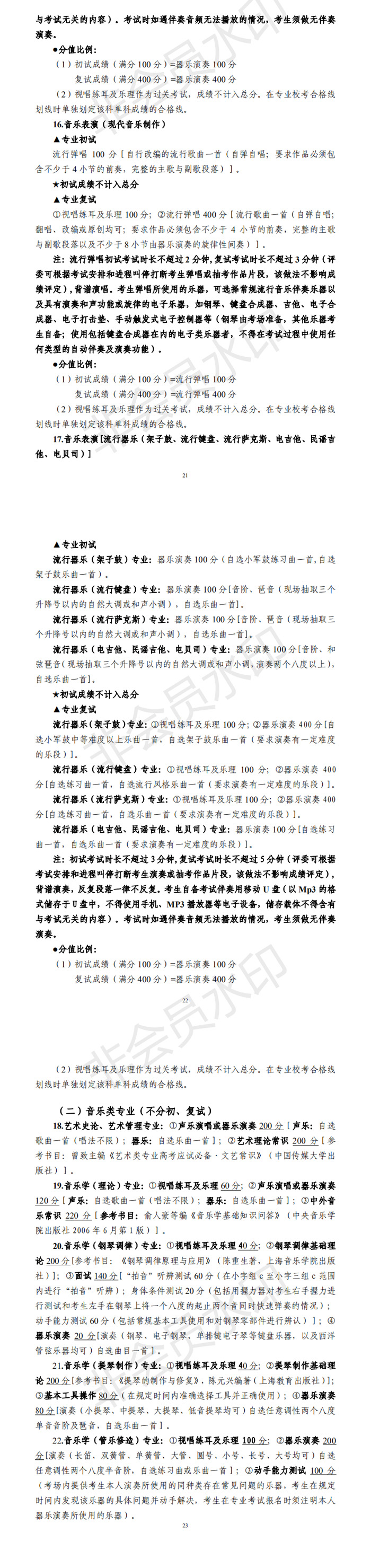 (三)考试题型:高中英语词汇;高中物理基础;音乐基本乐理。
