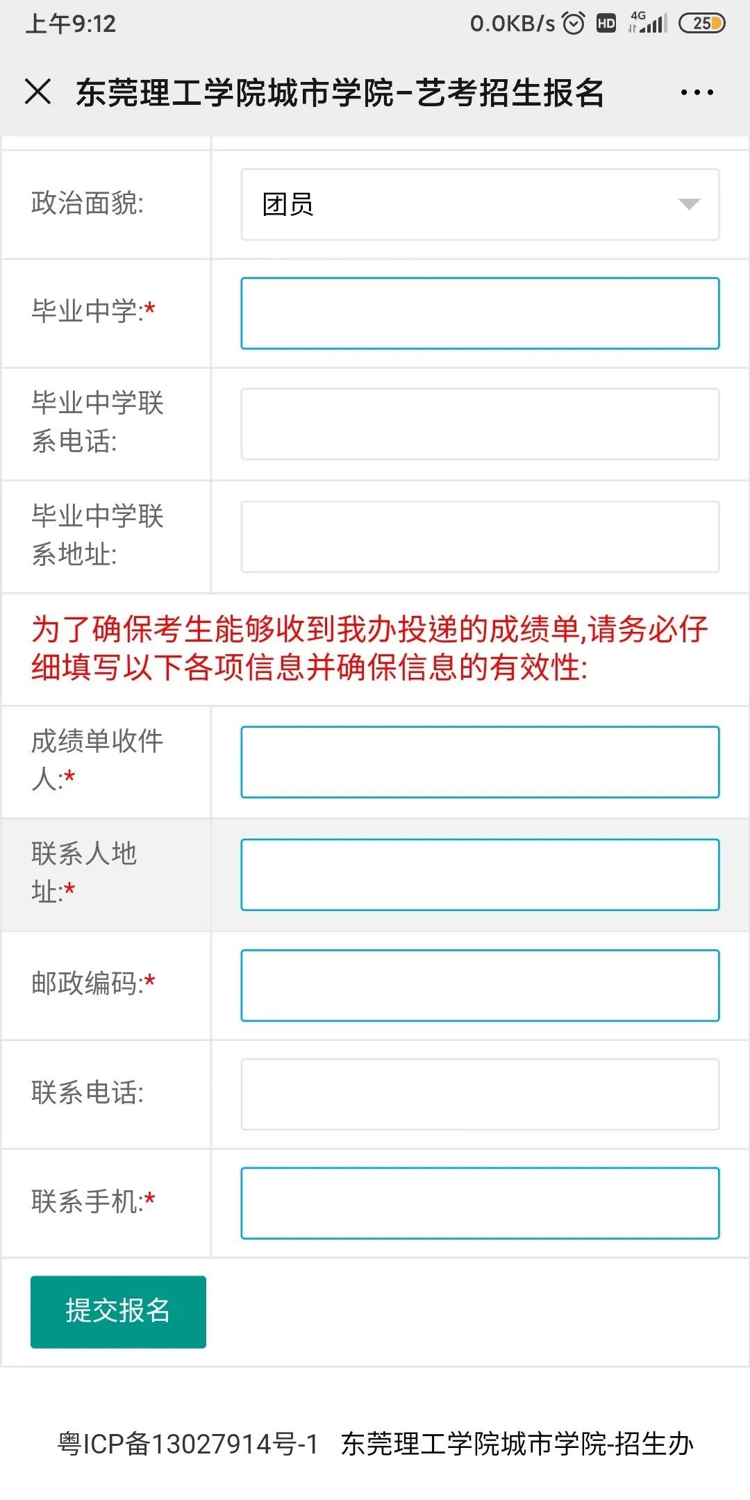 扫描后,进入填报页面