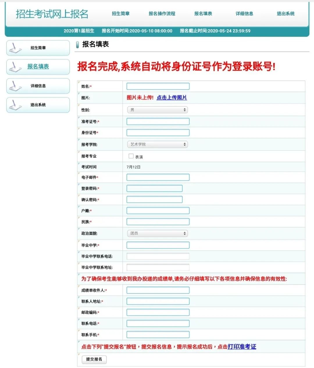 艺术校考报名时间:2020年5月10日—5月24日