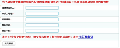 1、成绩单收件人推荐:父母、班主任、信得过的老师2、联系人地址:根据成绩收件人的所在地址填写3、邮政编码和联系电话:一定要确认准确无误家里有固话的同学也可填写上固话