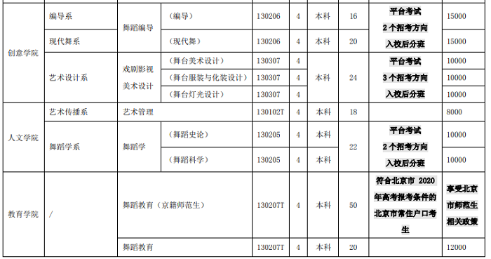 准)。除舞蹈教育(京籍师范生)方向只招收北京市常住户口考生外,学校所有艺术类校