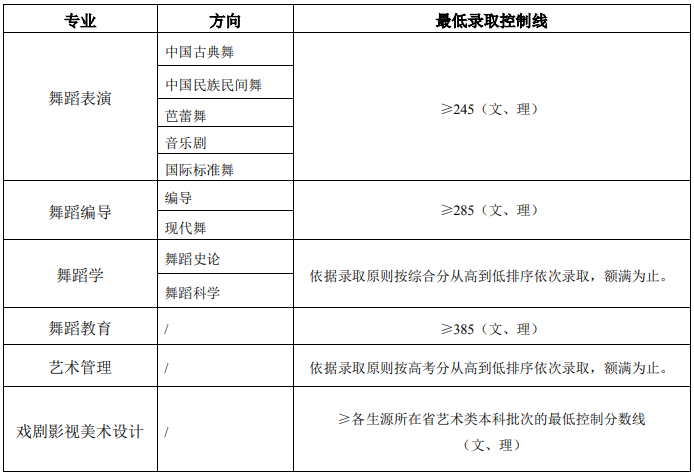 关于北京舞蹈学院2020年各专业录取最低控制分数线