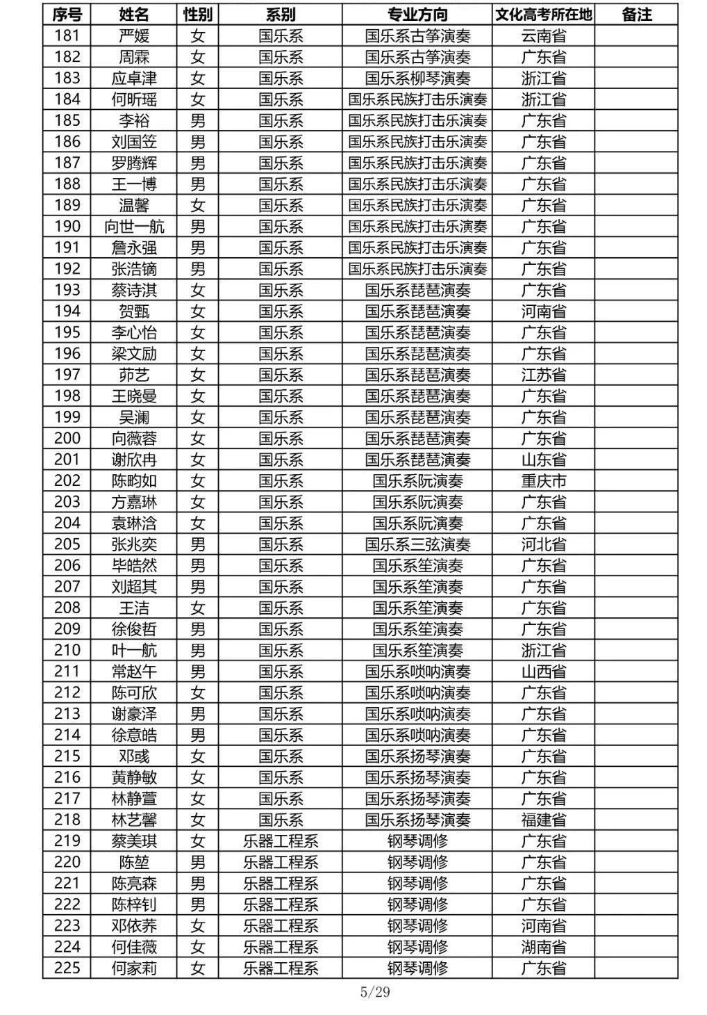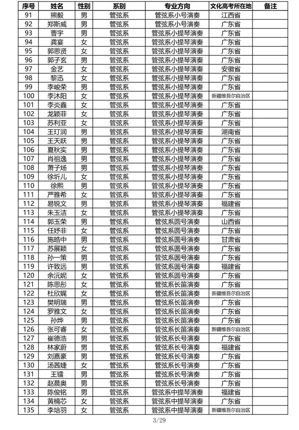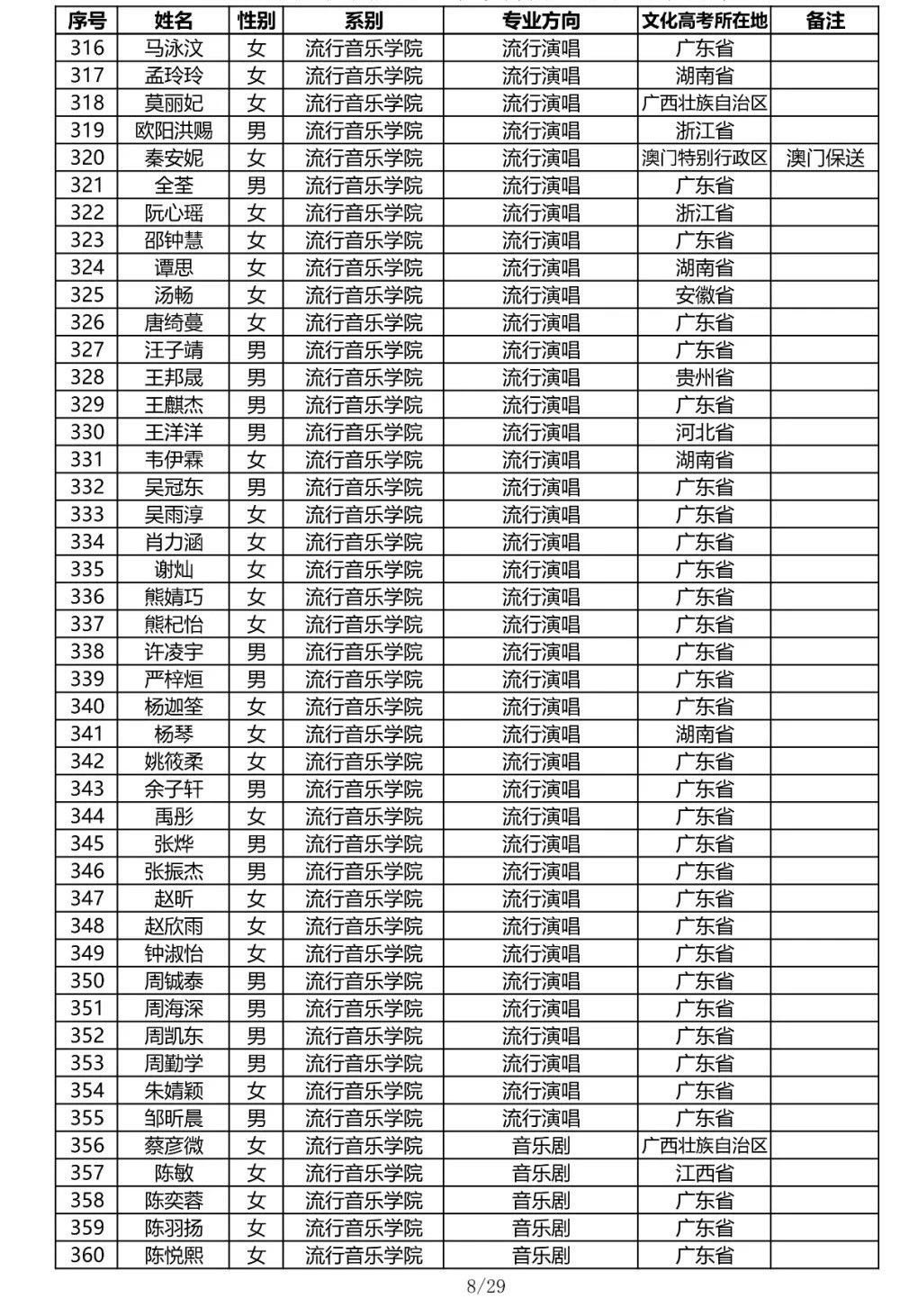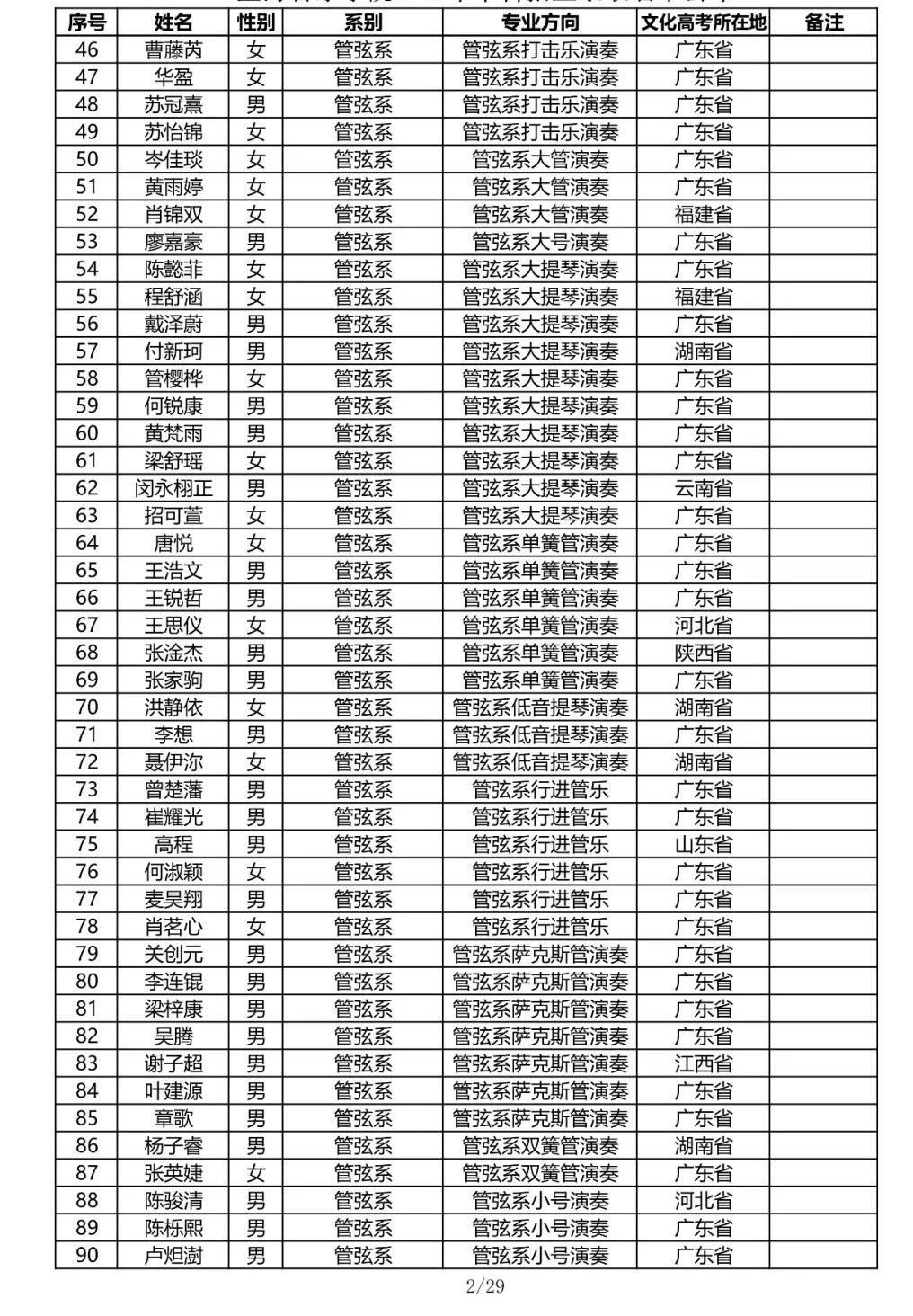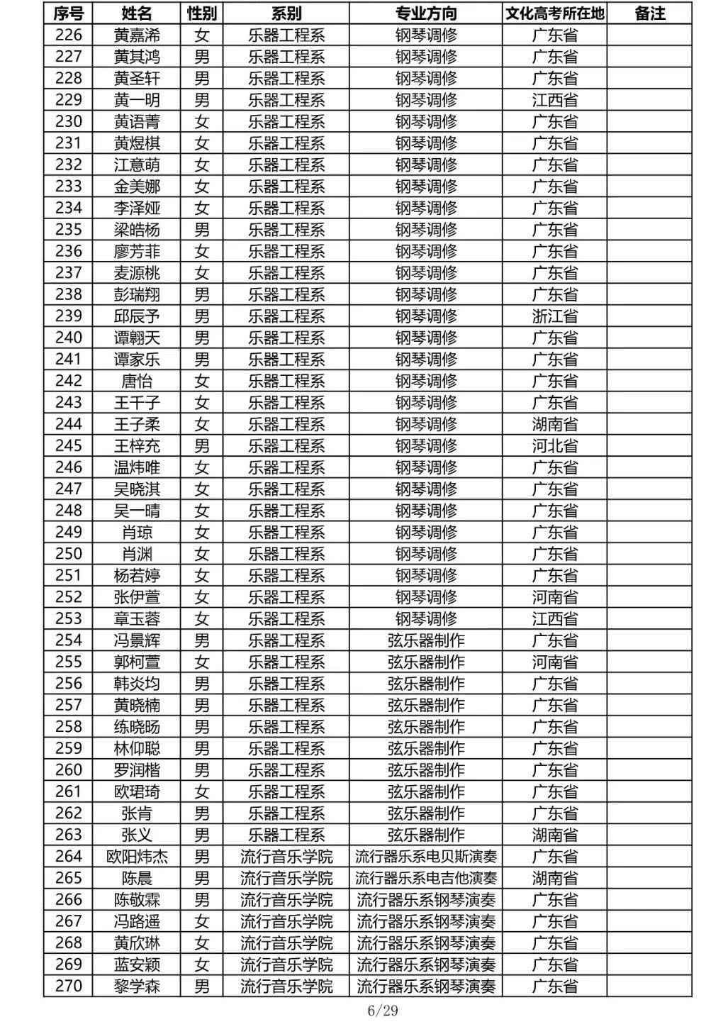 星海音乐学院2020年本科招生录取名单