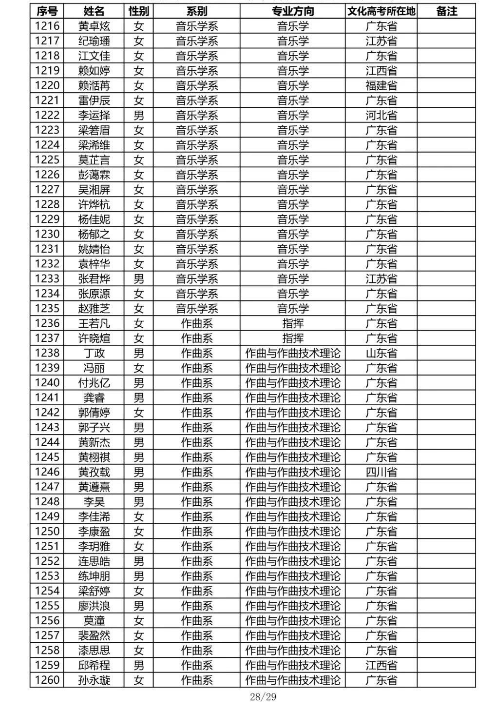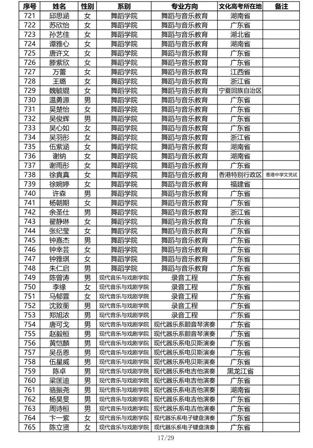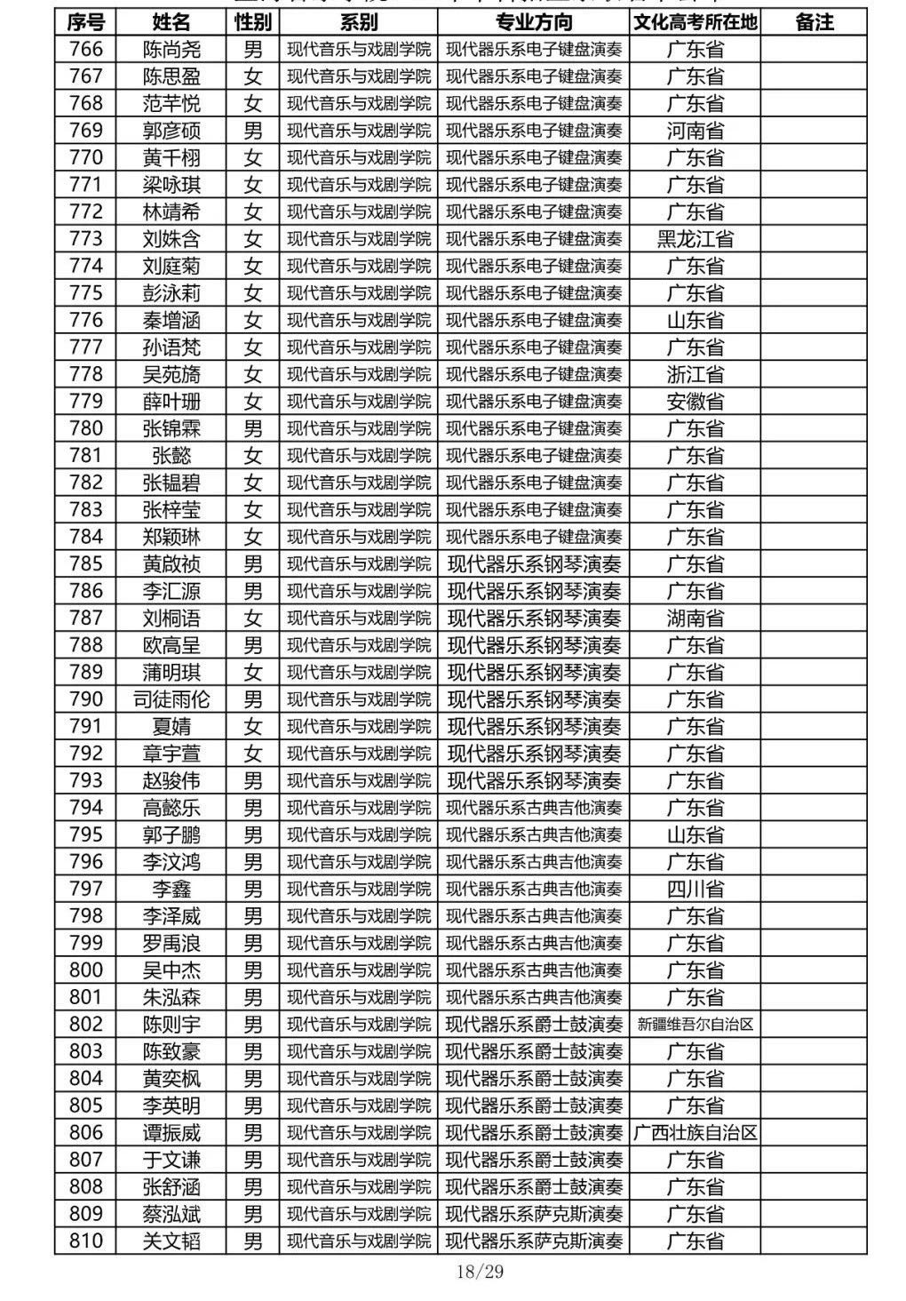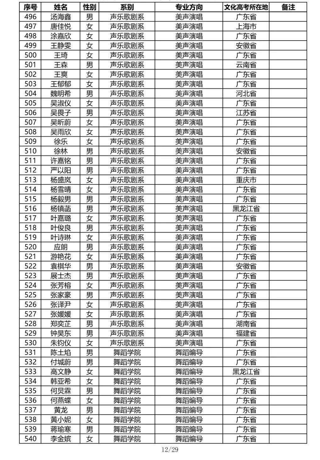 星海音乐学院2020年本科招生录取名单