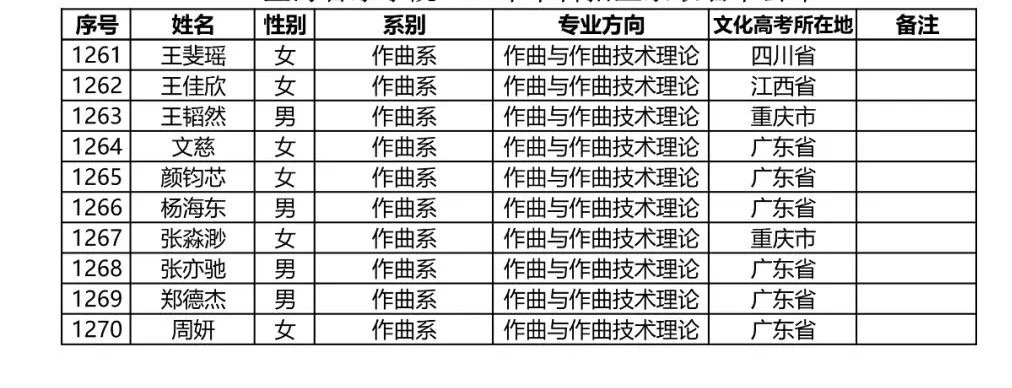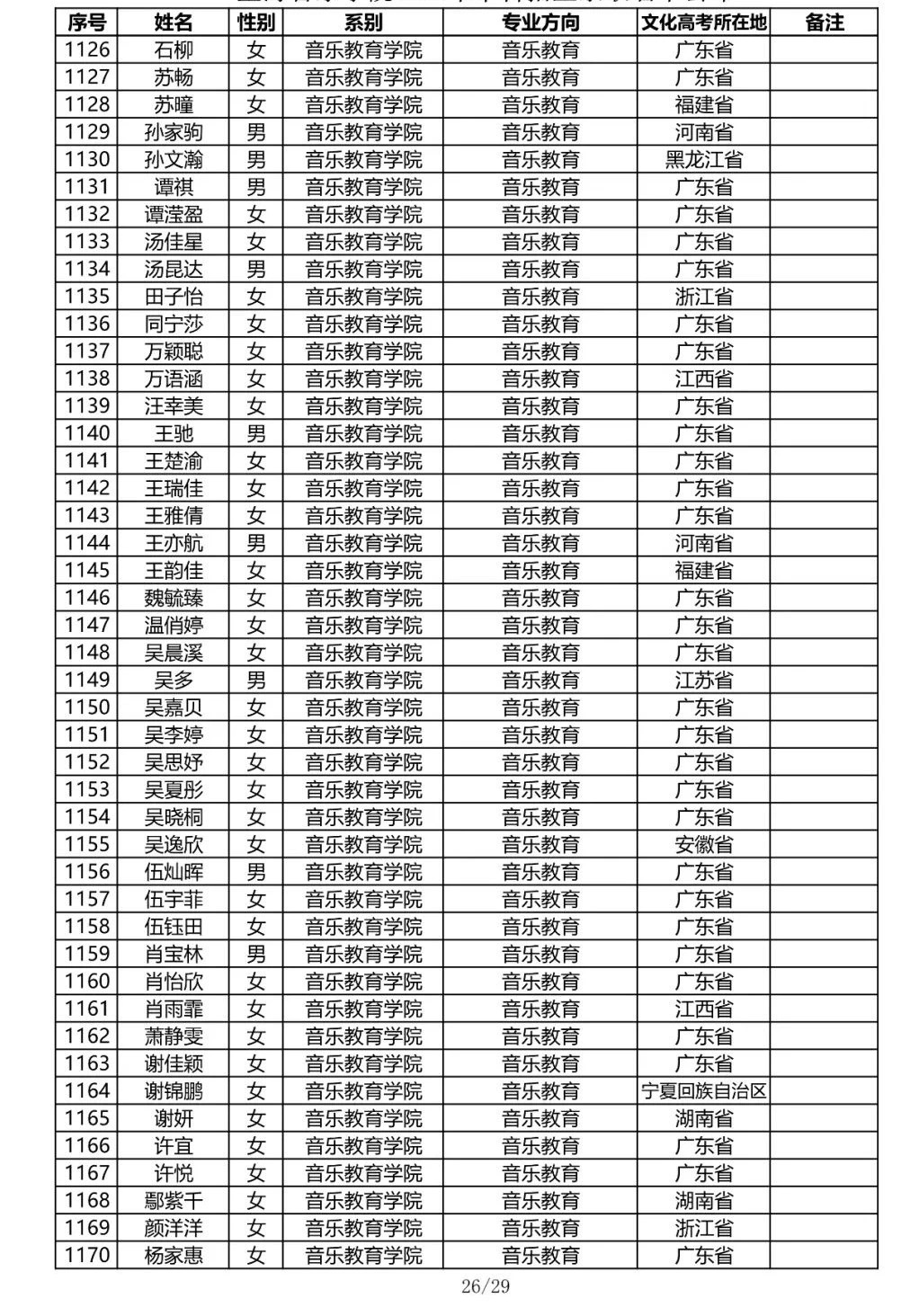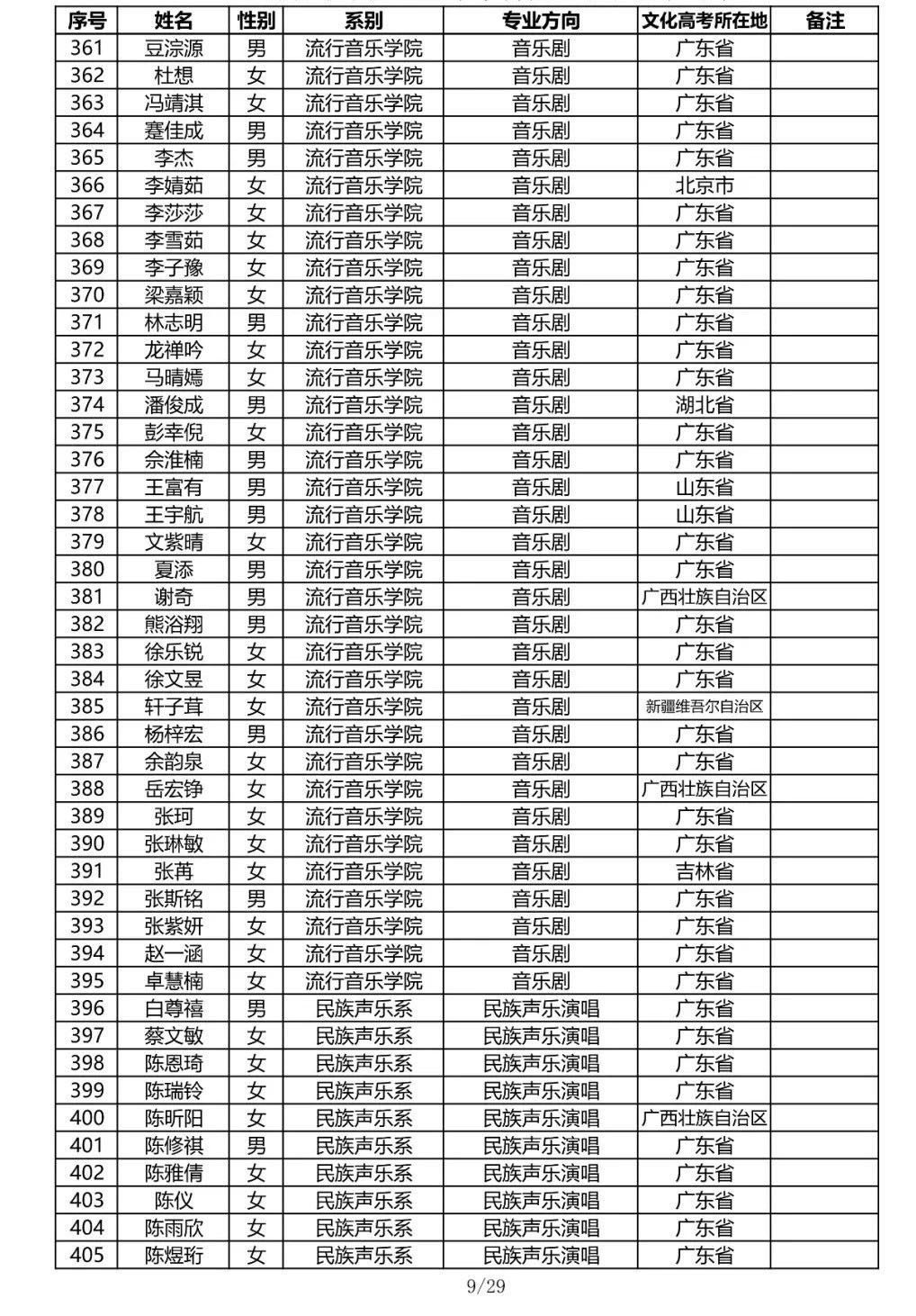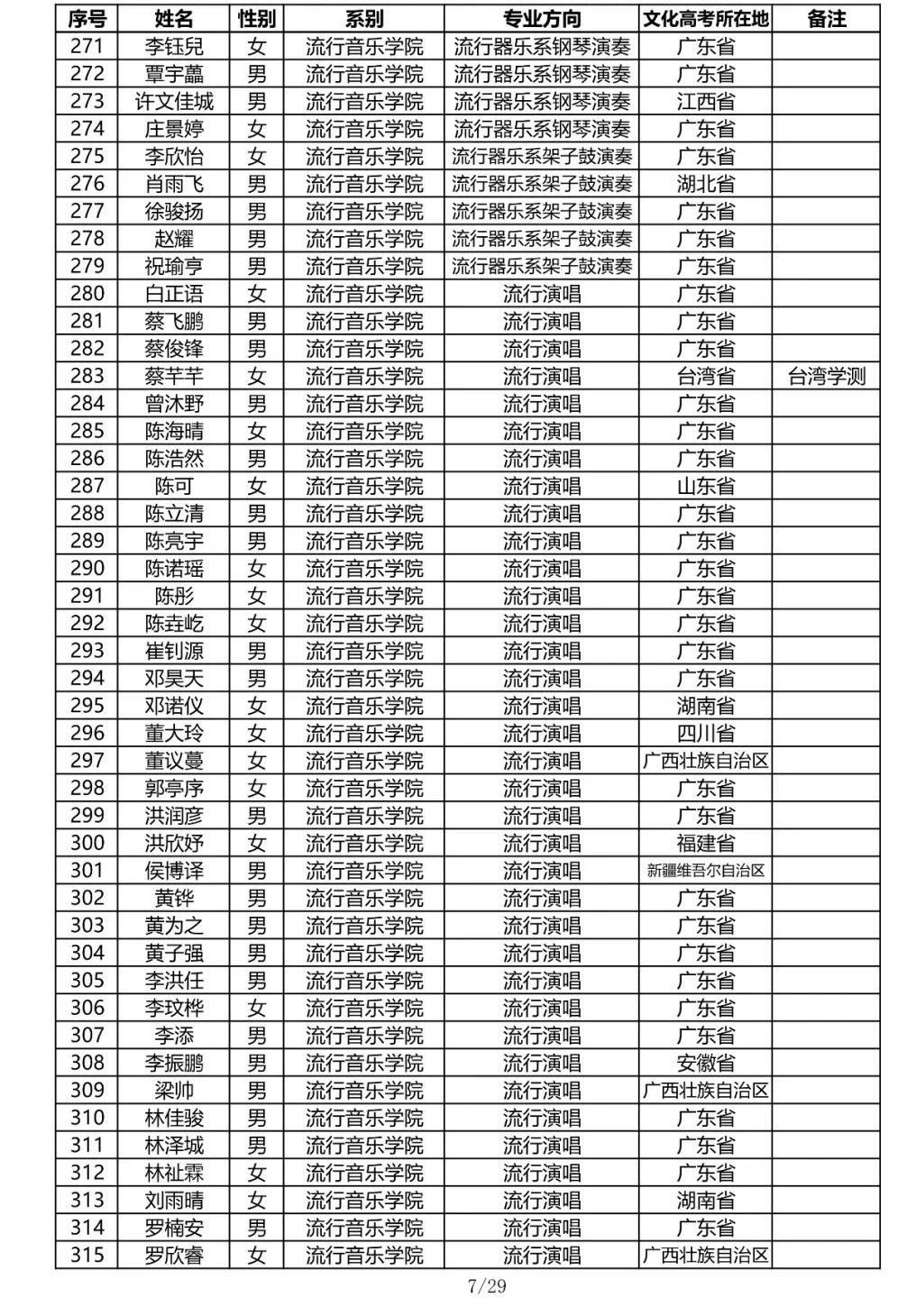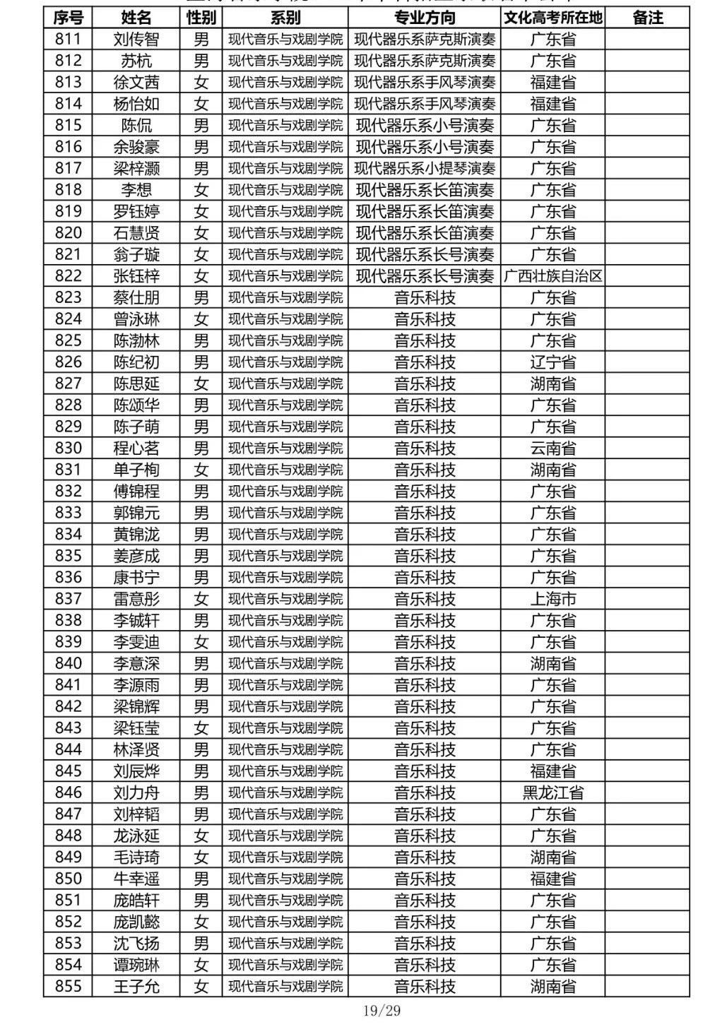 星海音乐学院2020年本科招生录取名单