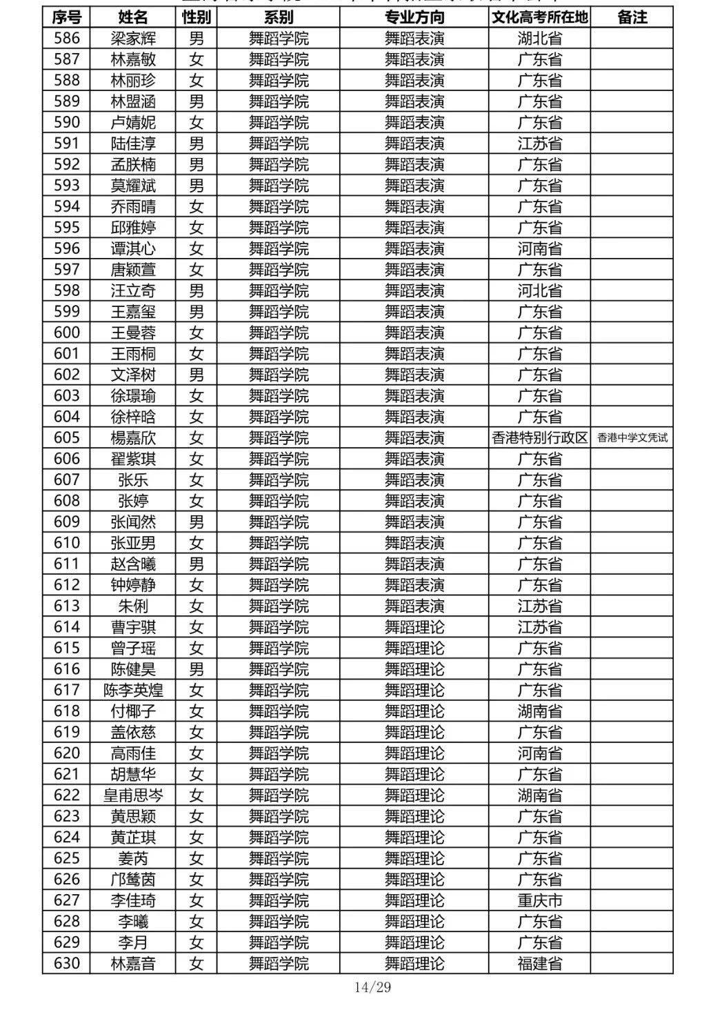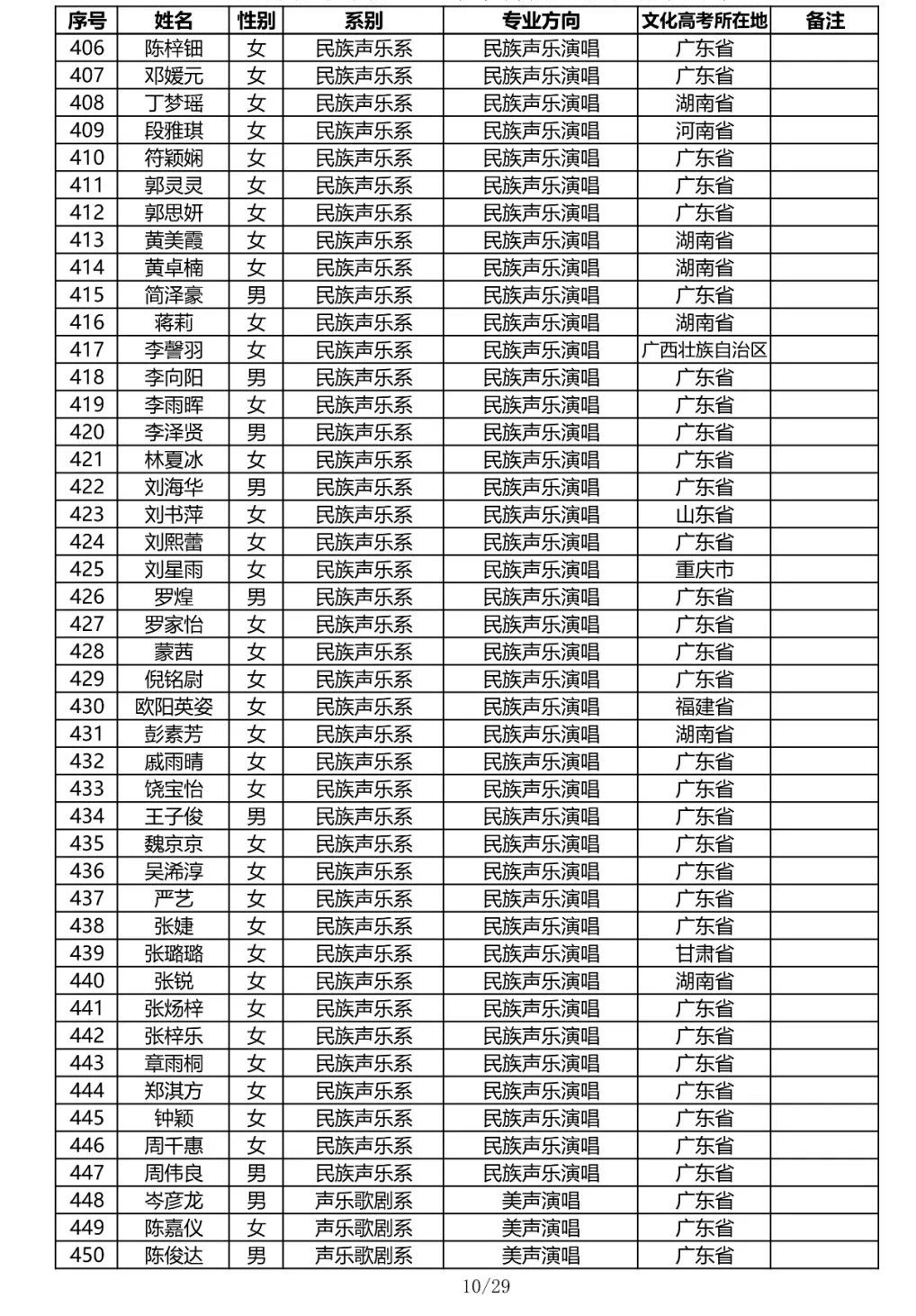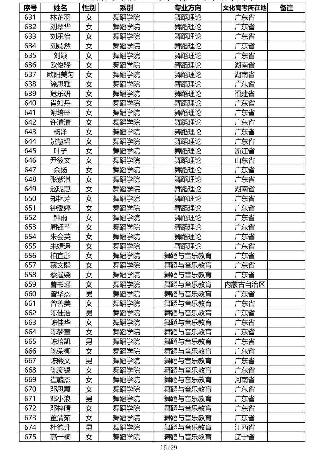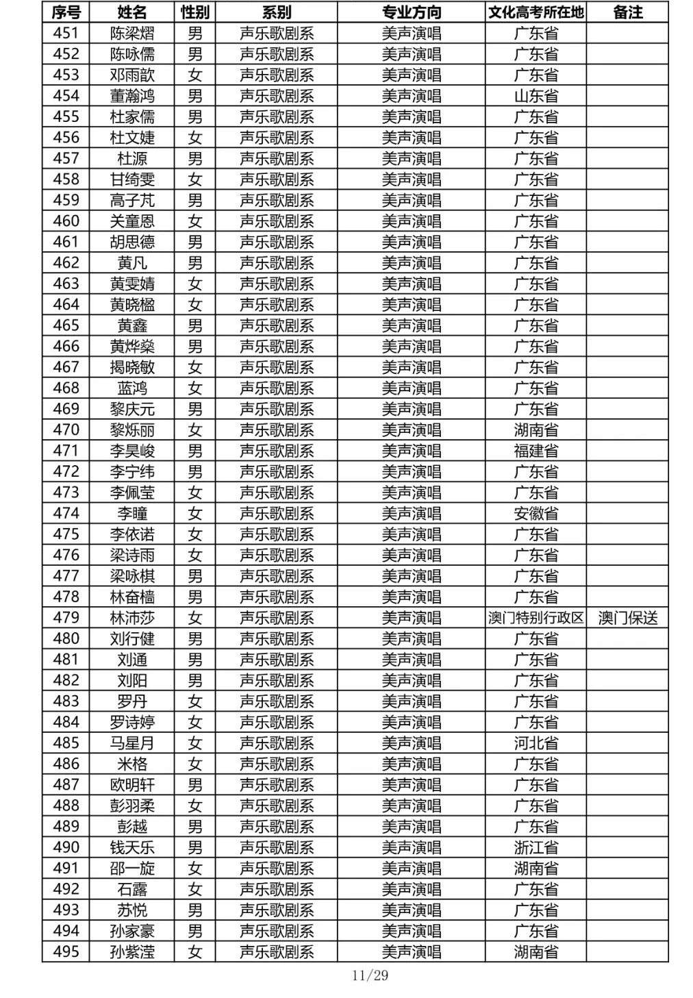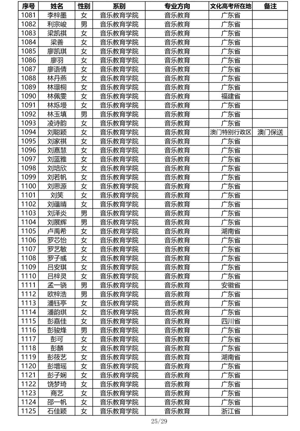 星海音乐学院2020年本科招生录取名单