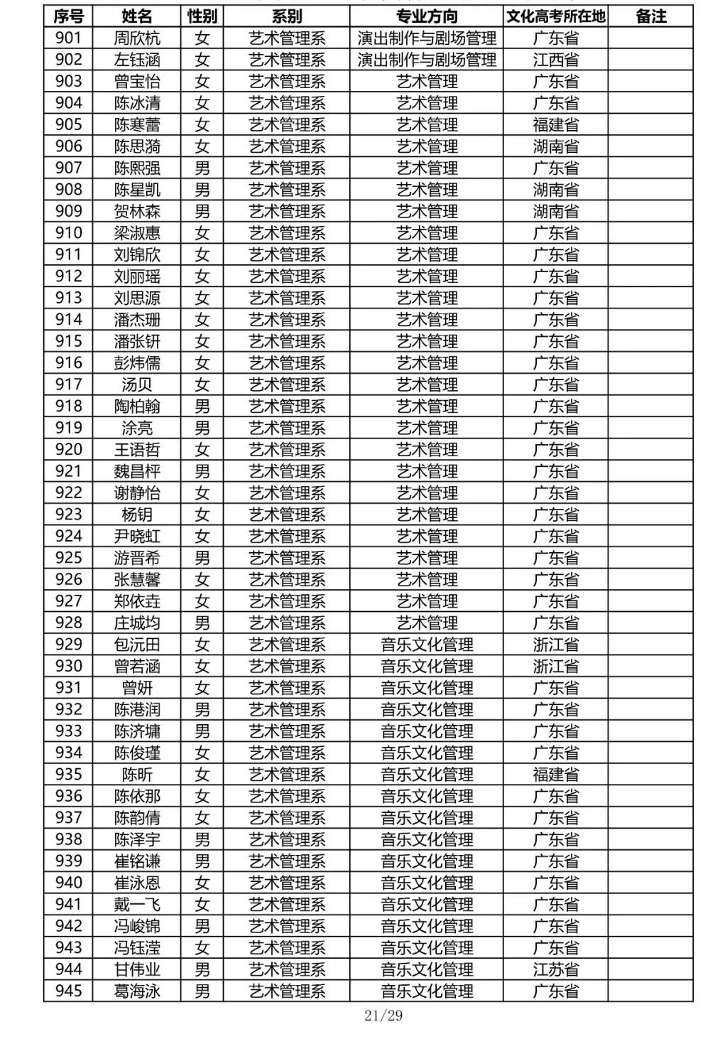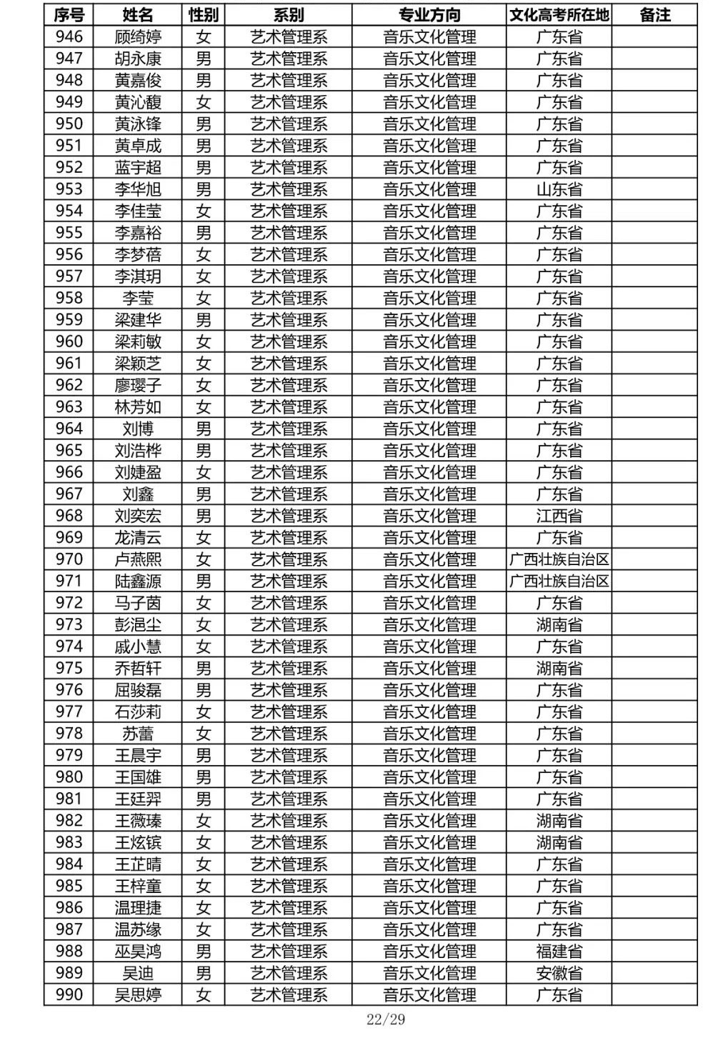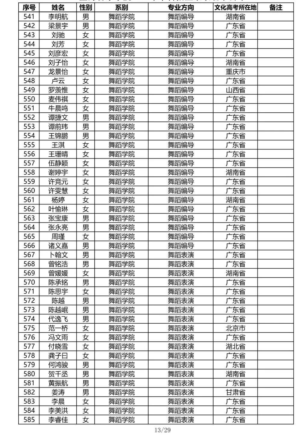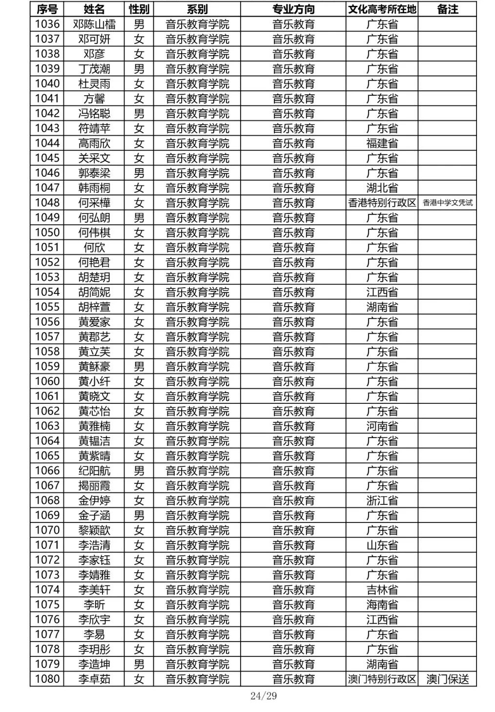 星海音乐学院2020年本科招生录取名单