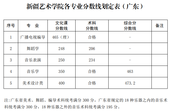 新疆艺术学院2020年普通本科各专业录取分数线