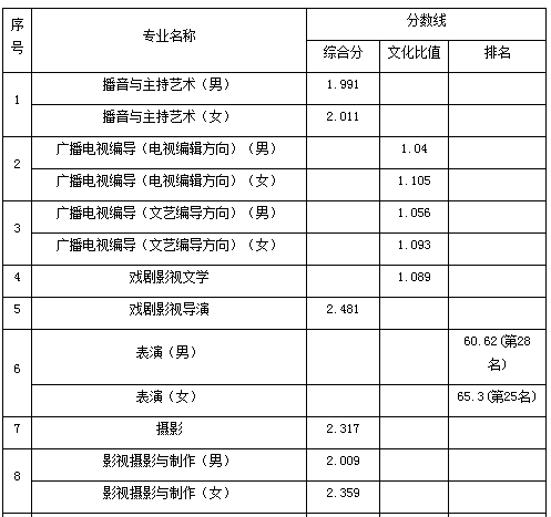 中国传媒大学2020年艺术类本科专业录取分数线​