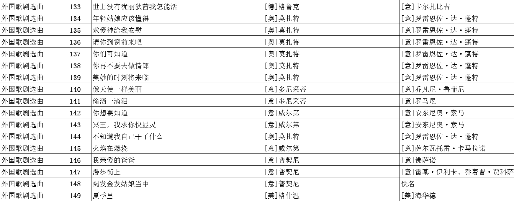 广东省音乐联考声乐外国歌曲选曲规定曲目