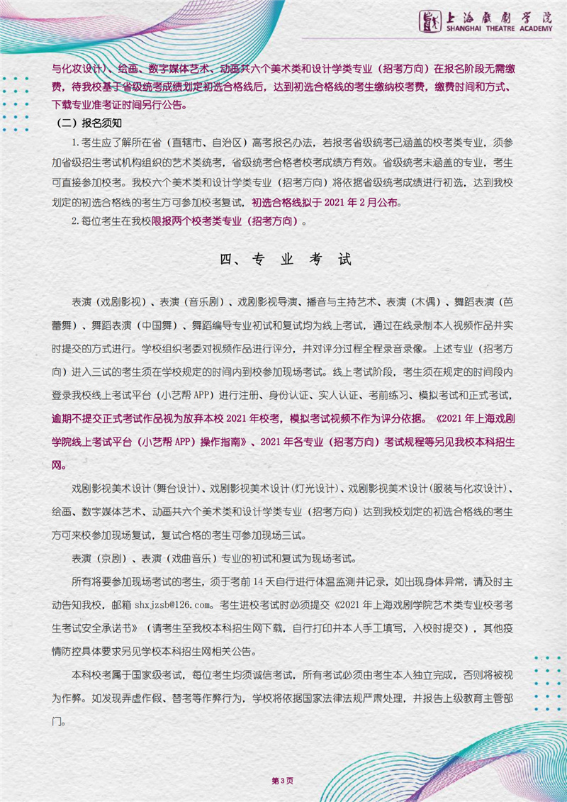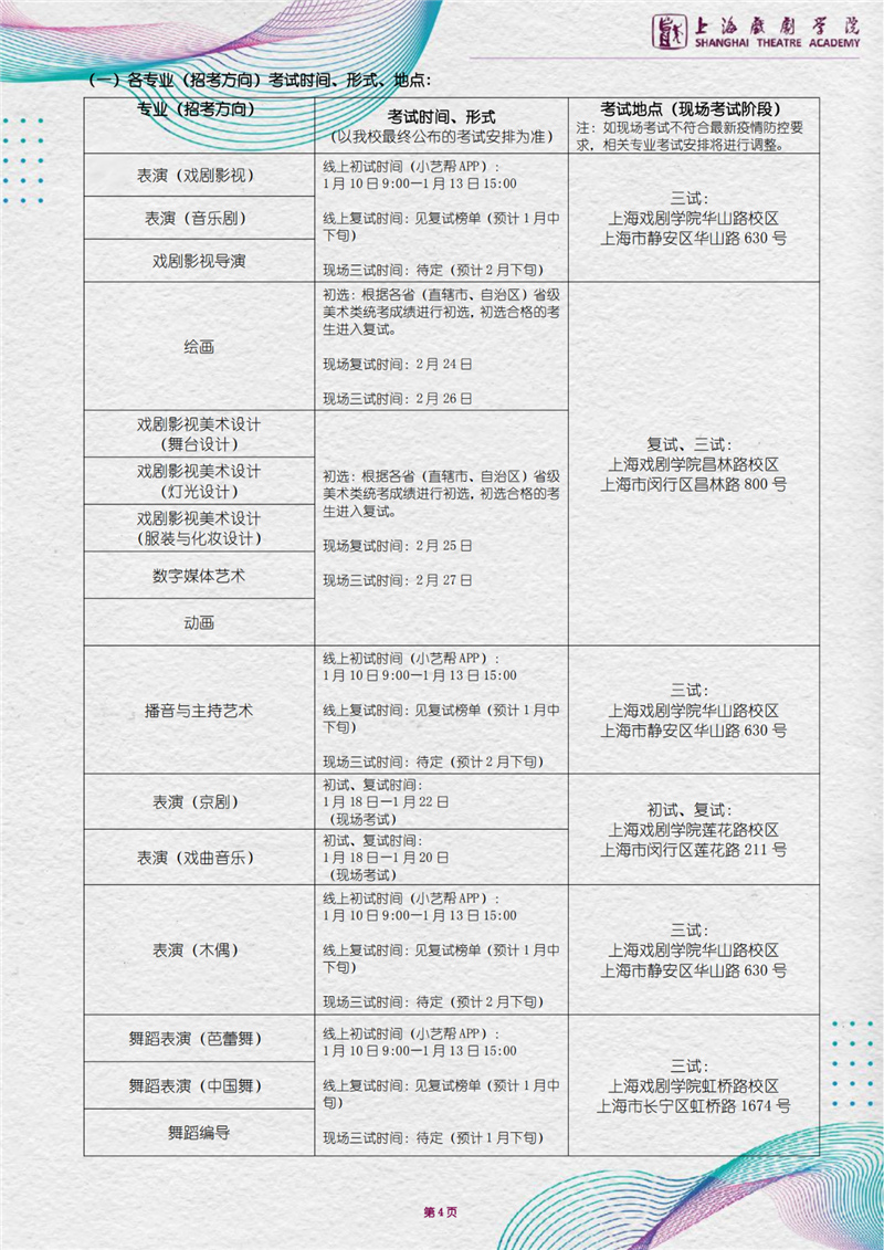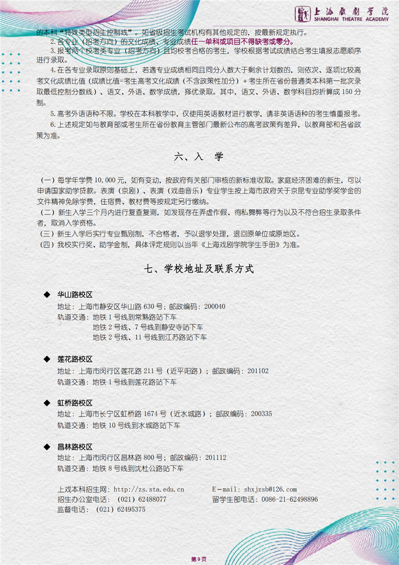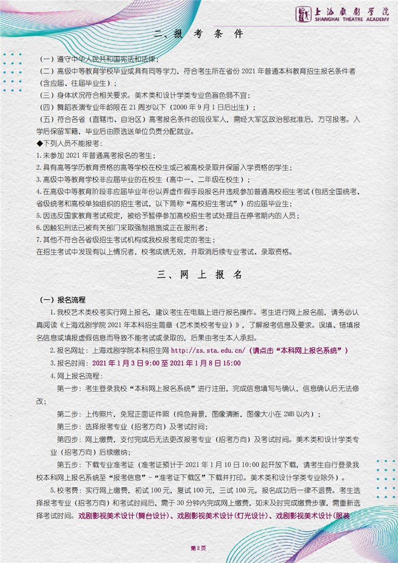 上海戏剧学院2021年招生简章