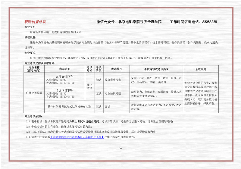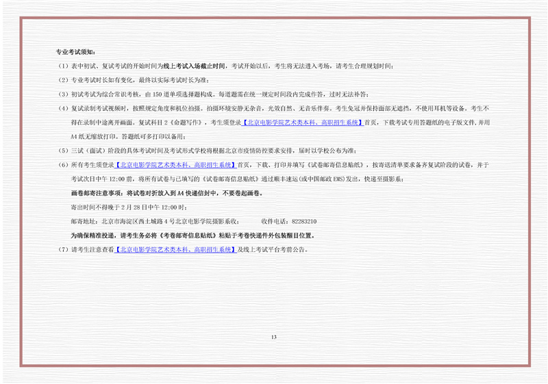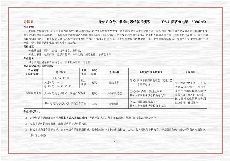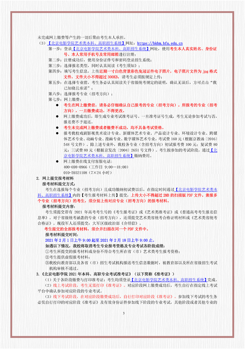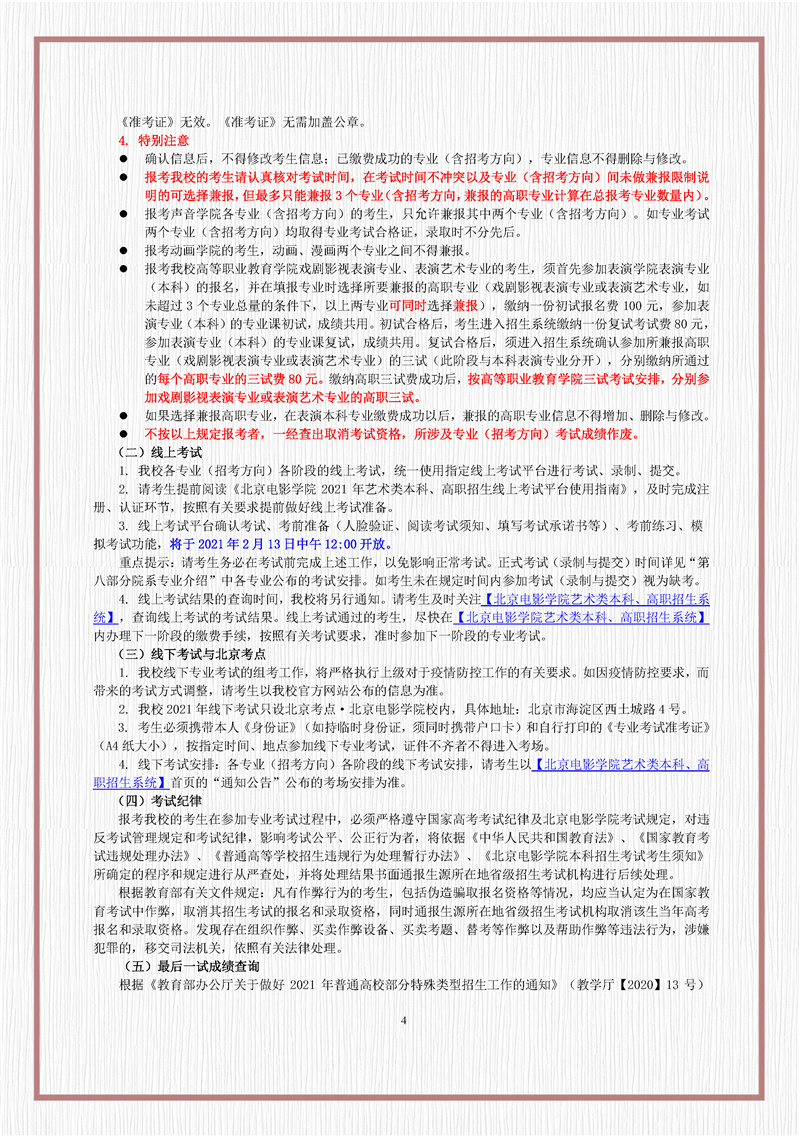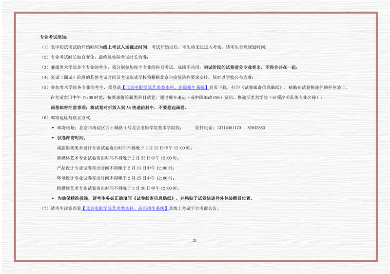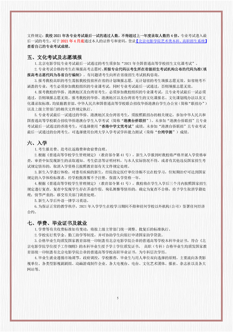 北京电影学院2021年招生简章