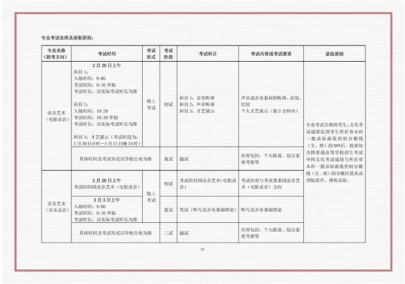 西安音乐学院2026年本科招生专业考试第一阶