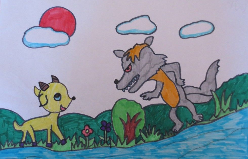 小羊吃了一惊,温和地说:“我不明白我怎么会把水弄脏。您站在上游,水是从您那儿流到我这儿,不是从我这儿流到您那儿的……”