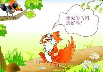 狐狸站在树下摇着尾巴像乌鸦问好:“亲爱的乌鸦你好啊!乌鸦不做声。狐狸又说:“亲爱的乌鸦,您的孩子好吗?乌鸦看了狐狸一眼,还是不做声。狐狸眨眨眼,装出一副激动的样子对乌鸦说:“啊,亲爱的乌鸦,我觉得您真美!您的羽毛像缎子一样闪闪发光,森林里没有哪只鸟比您更漂亮!我听说,您的歌喉美妙动听,只是,我从没听你唱过。多想听到您的歌声啊,您唱几句吧!