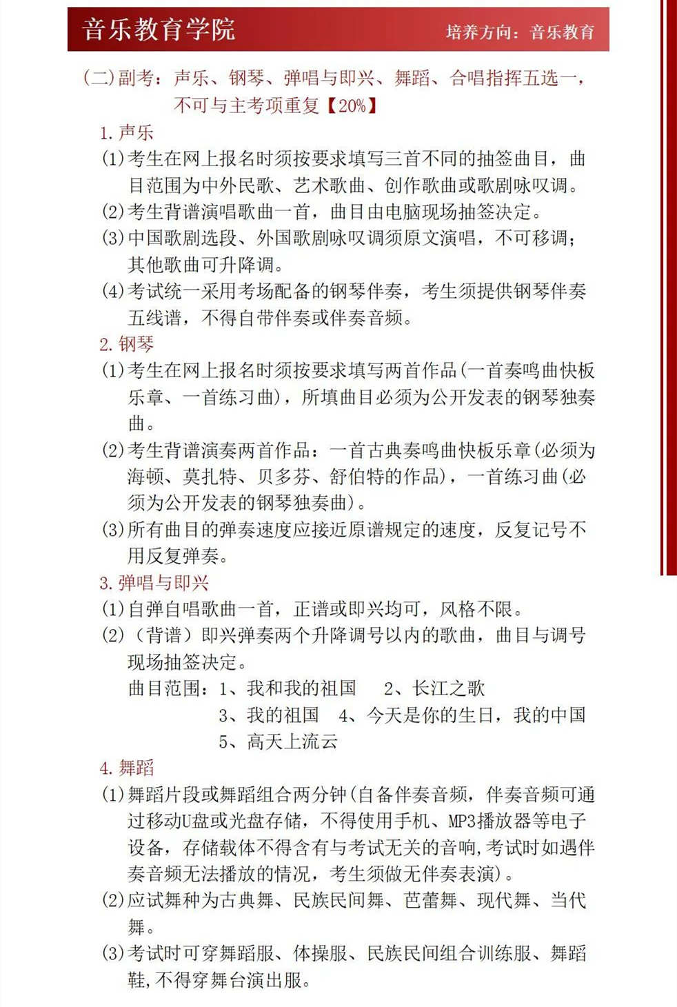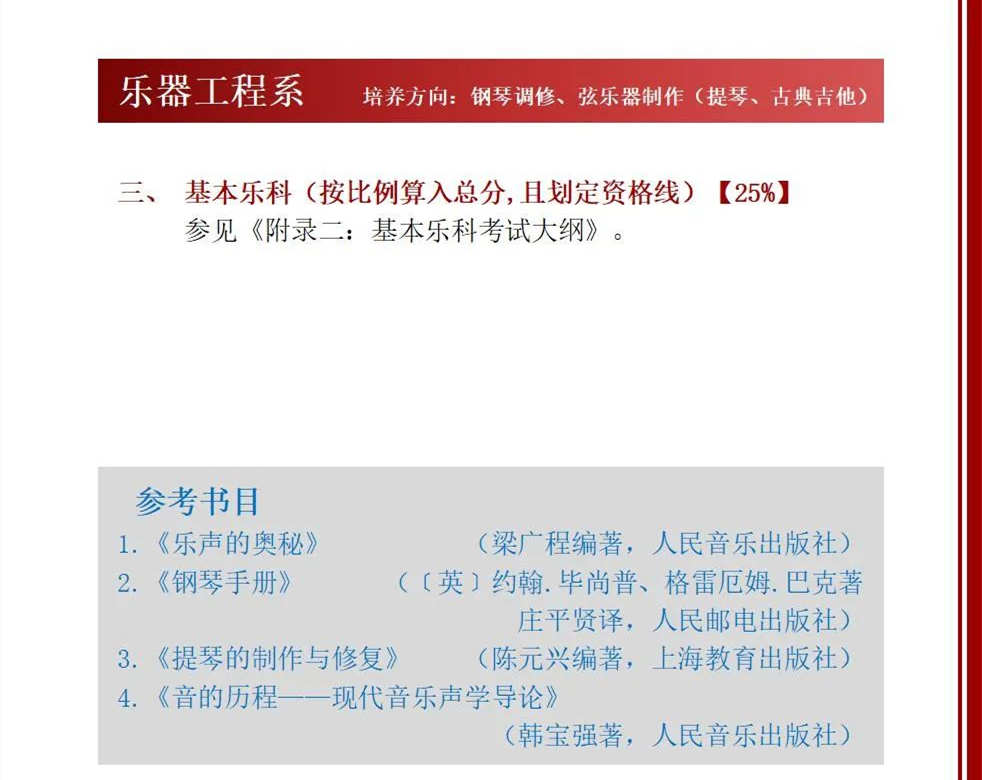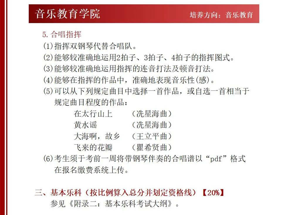 星海音乐学院2022年本科招生考试曲目库