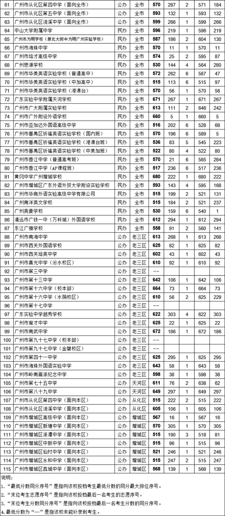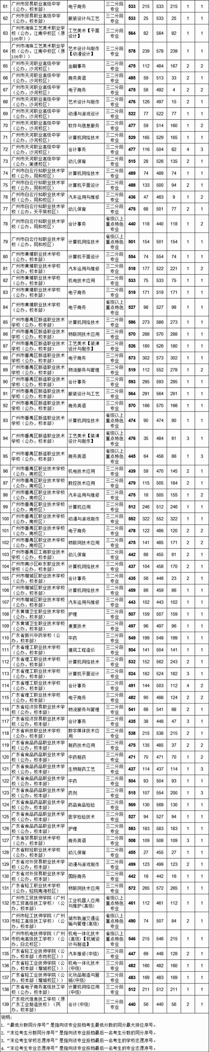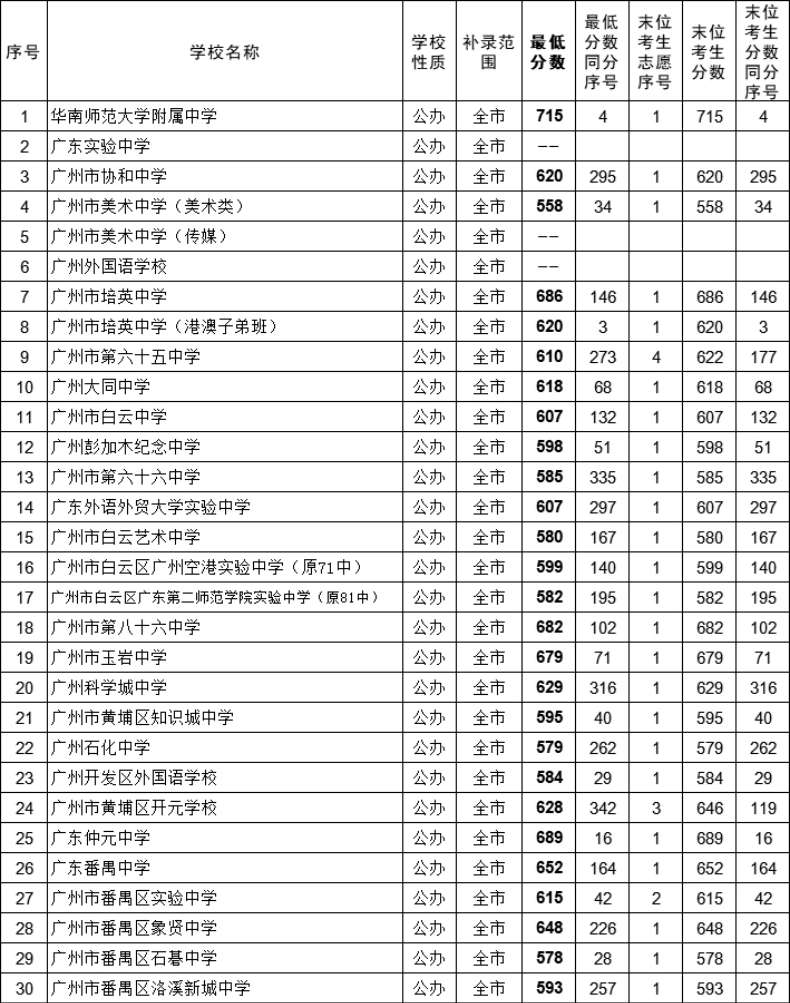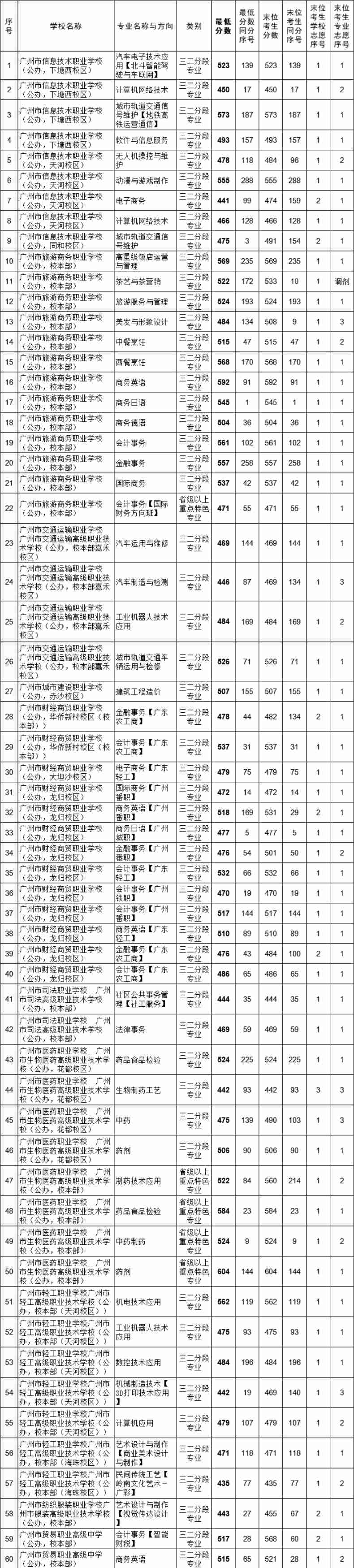 2021年广州市普通高中和中职三二分段及省级以上重点特色专业补录工作于8月11日进行,现将录取分数公布如下: