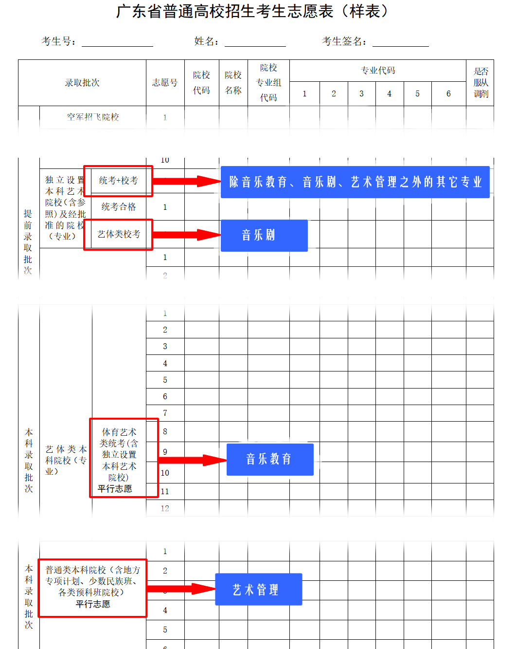 【四】广东省普通高校招生考生志愿表