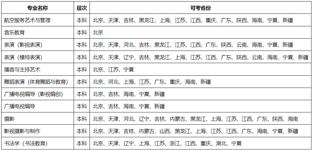 (四)可参加我校校考(专业加试)的省份汇总表
