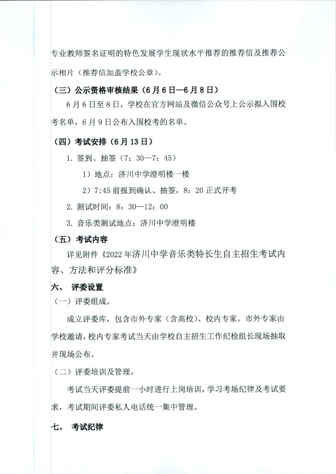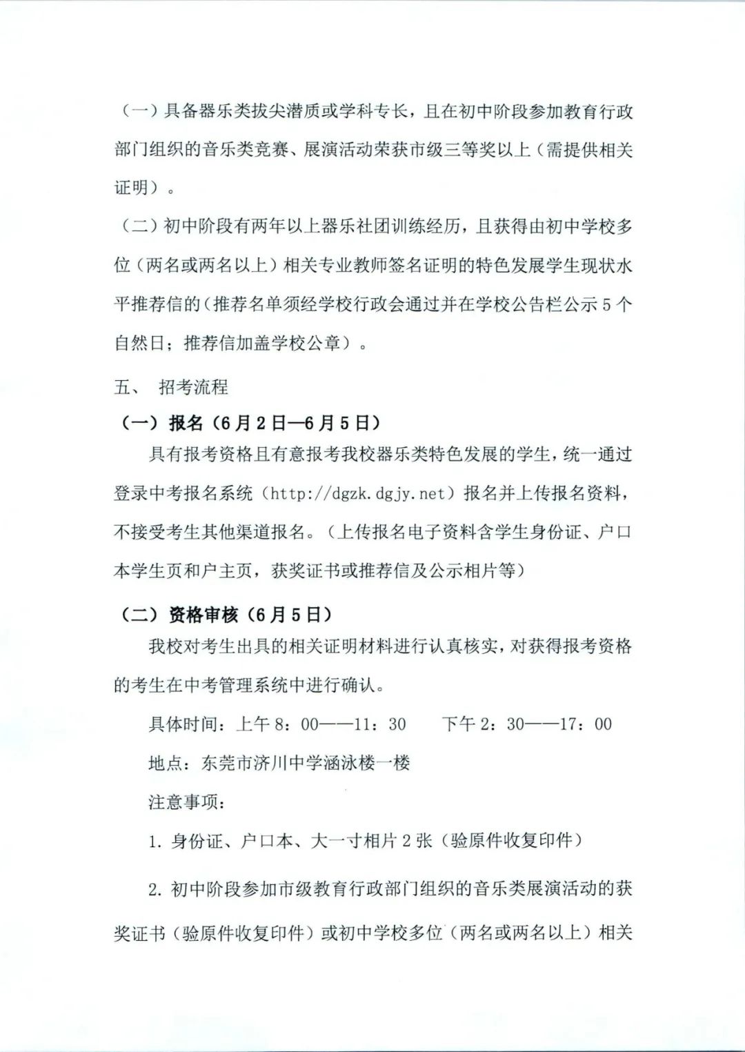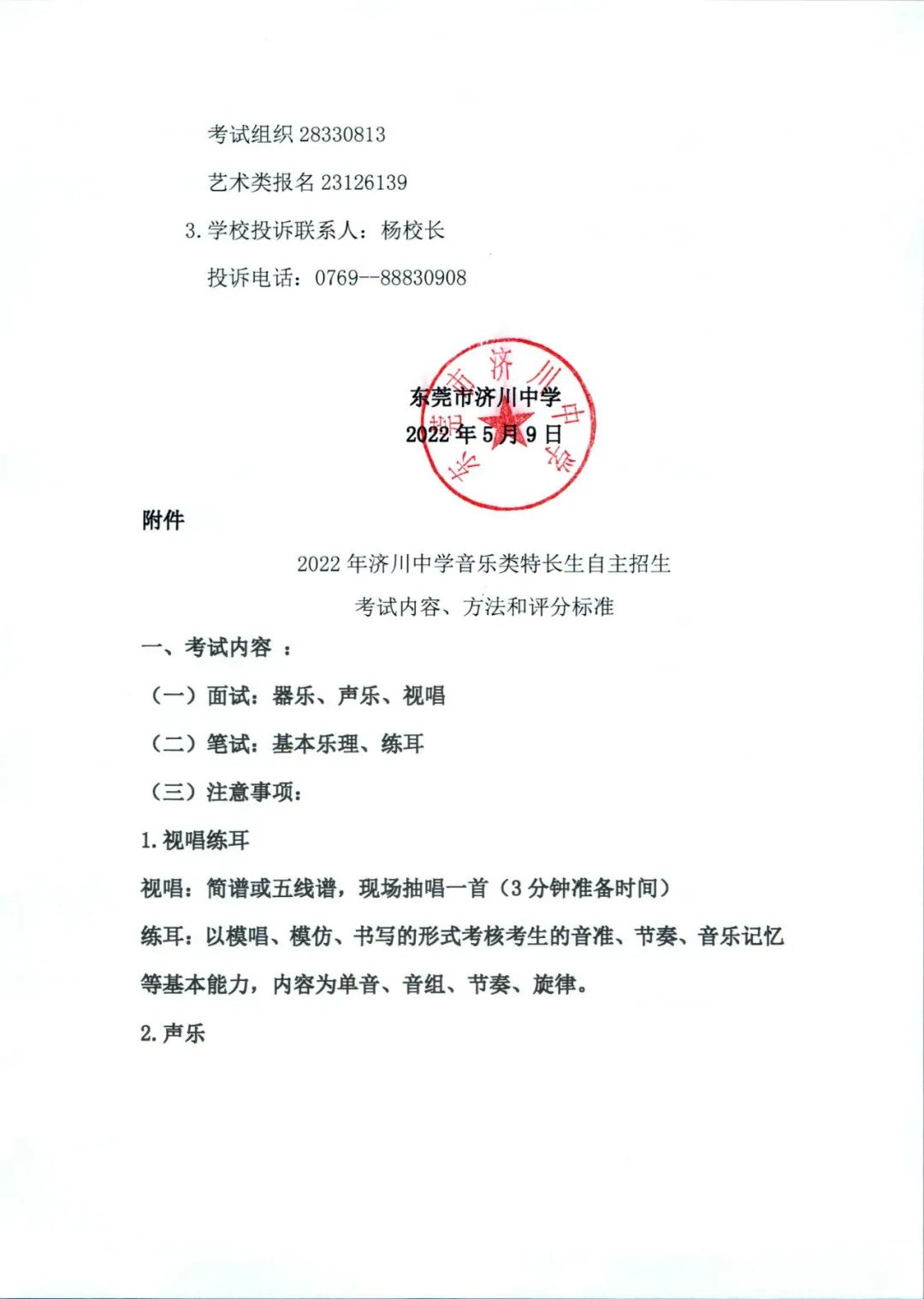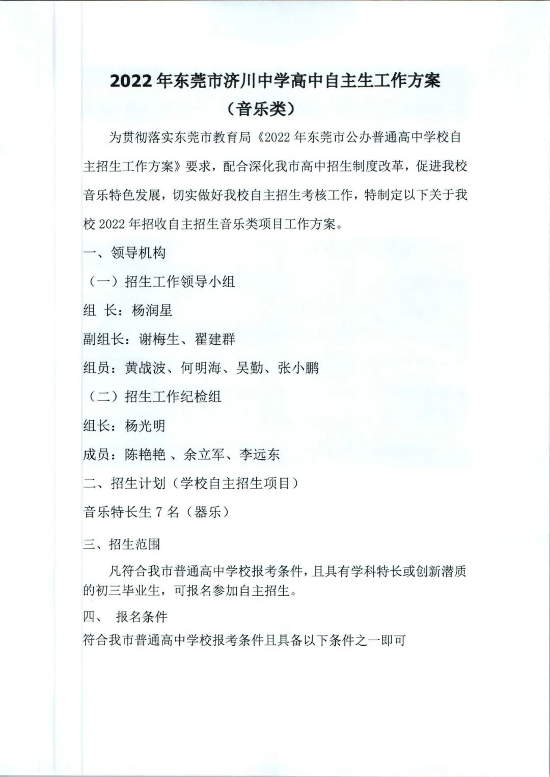 2022年东莞市济川中学高中特长生自主招生工作方案(音乐类)