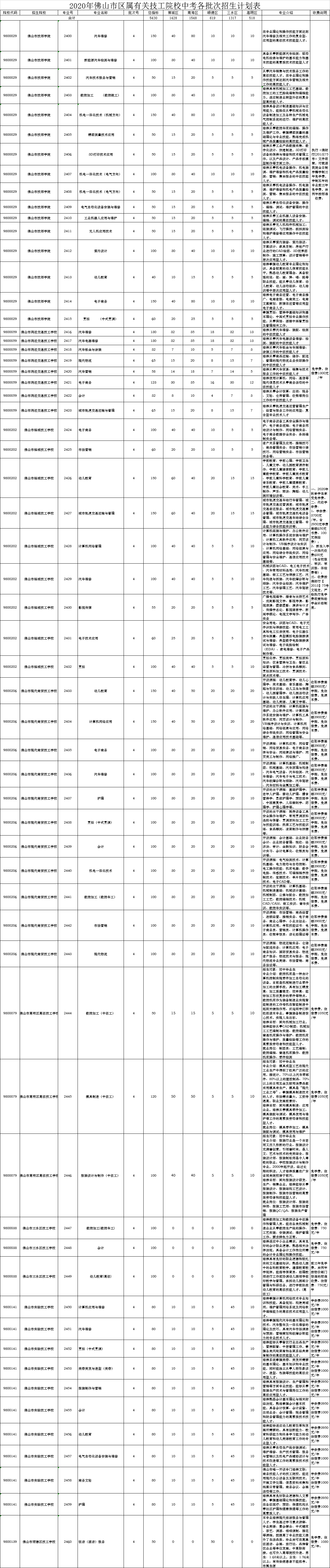 佛山市2020年技工院校中考佛山市属技工院校第四批批次招生计划表