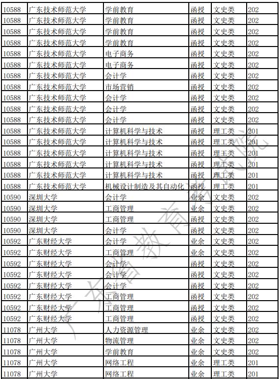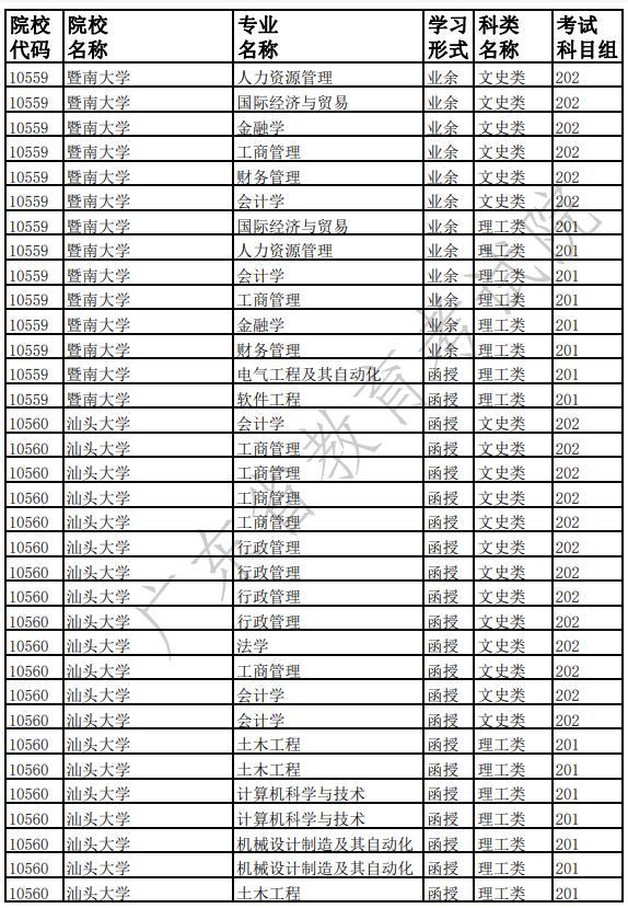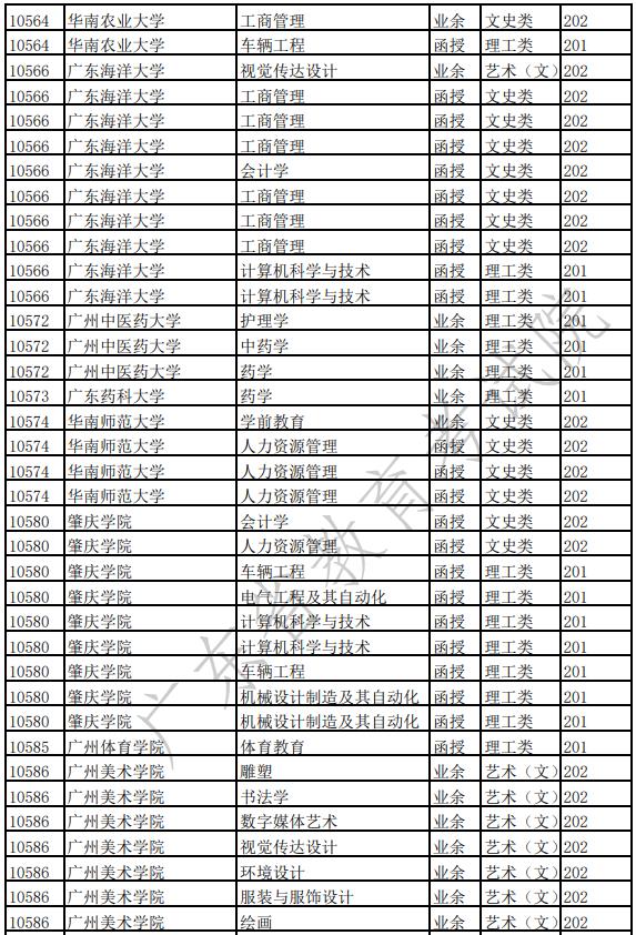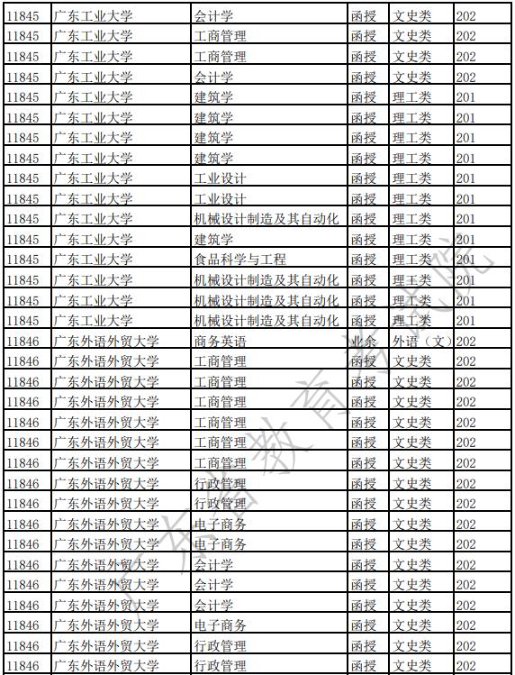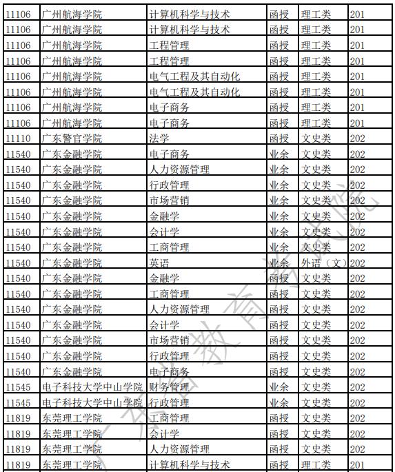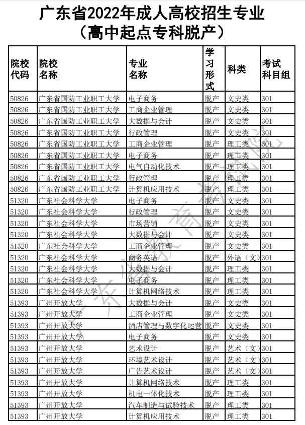广东省2022年成人高校招生专业(高中起点本科)