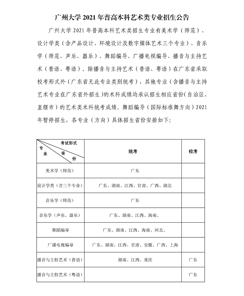 来源:广州大学2021年艺术类招生 | 作者:广州大学2021年艺术类招生 | 发布时间: 2021-01-27 | 15447 次浏览 | 分享到: